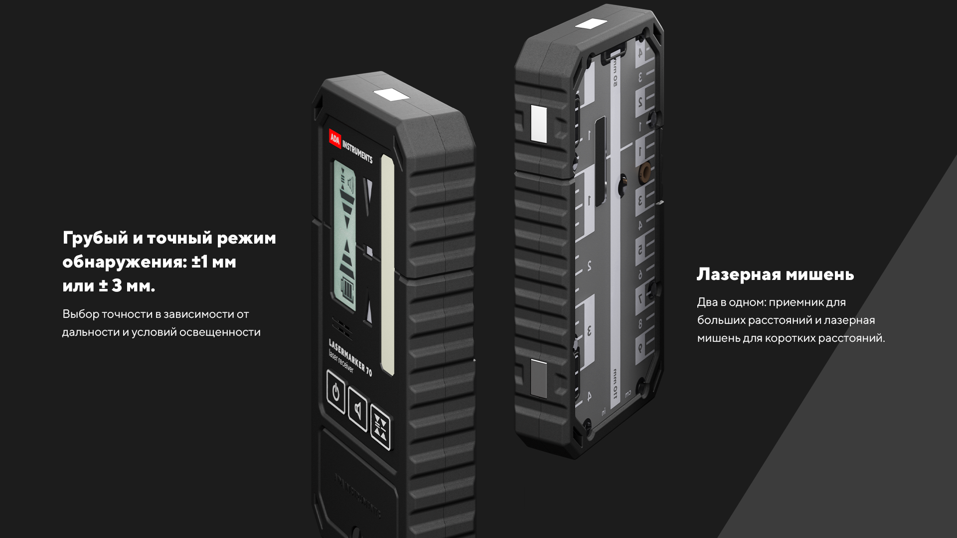 Приемник ADA LASERMARKER 70 распознает лазерные лучи зеленого и красного цвета.