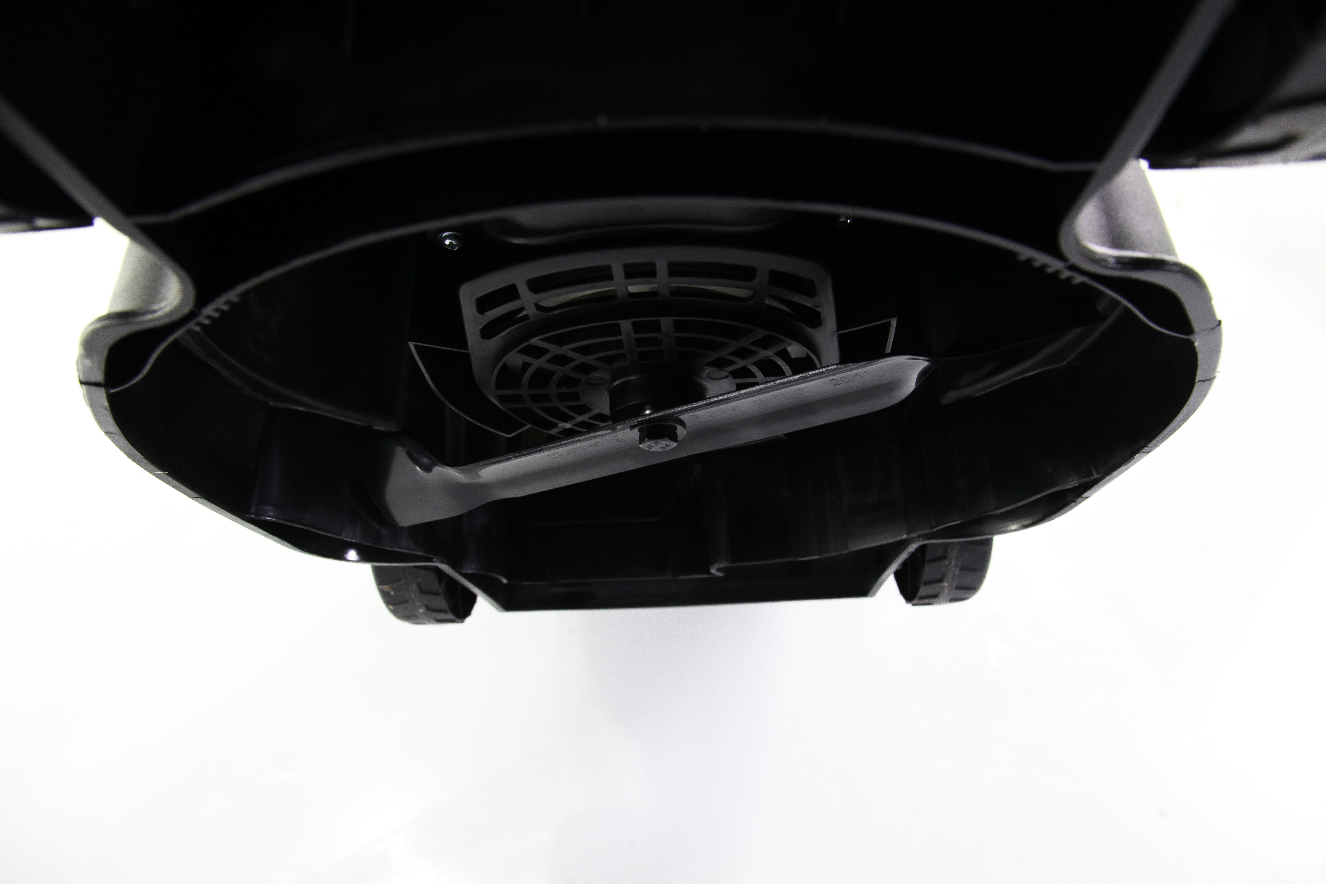 Он изготовлен из ударопрочного пластика. В стенках прорезаны специальные отверстия для свободного доступа воздуха – это позволяет обеспечить максимальное заполнение бака путем утрамбовывания скошенной травы и повышает эффективность работы. Травосборник оснащен удобной, прочной ручкой, что значительно упрощает его опорожнение.
