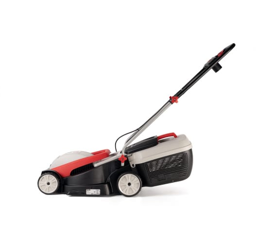 Бесшумный электродвигатель в 1400 Ватт и малый вес газонокосилки, всего 13 кг, прекрасно справляется со скашиванием травы высотой до 60 мм. Высота среза регулируется у колесной оси и имеет 3 уровня регулировки в диапазоне от 20 до 60 мм. Маневренные колеса размера XL (140/160 мм), в сочетании с малым весом позволяют очень легко и без усталости управлять газонокосилкой – идеальный вариант, когда садом владеет женщина или пожилые люди, которым важна легкость управления.