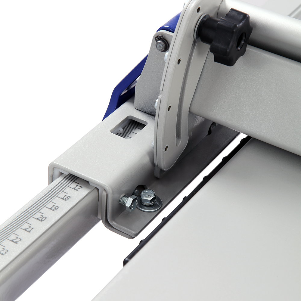 Станок оснащен параллельным упором, который устанавливается на направляющие со шкалами. Используется он как при пилении (с обоих сторон режущего инструмента), так и при строгании. Установка проста: на одной стороне упора находится зацеп, на второй – фиксатор. Направляющая упора выполнена из алюминиевого профиля. Ее можно установить под углом от 0 до 45°. Для точного позиционирования заготовки при распиловке станок имеет угловой упор. Он устанавливается в специальный паз на пильном столе. Заготовку можно ориентировать в диапазоне от -45 до +45 градусов.