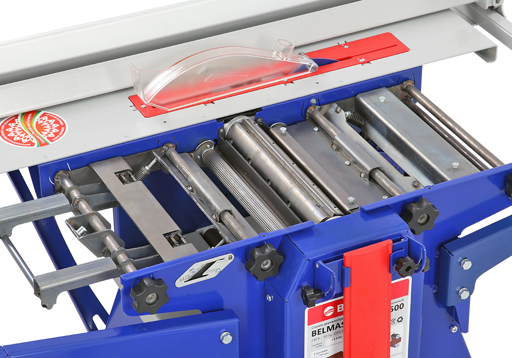 Пильный узел станка рассчитан на установку дисков диаметром 315 мм, что позволяет распускать заготовки до 117 мм высотой. Столы (пильный и строгальные) при этом образуют единую рабочую достаточно большую поверхность. Настройка высоты пропила происходит за счет изменения положения режущего инструмента. Кроме пильных дисков можно устанавливать дисковые фрезы диаметром 125 мм, шириной до 10 мм.