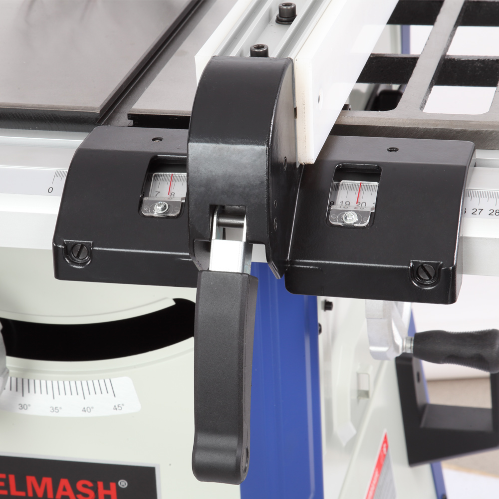 Параллельный упор, выполненный из алюминиевого профиля с накладками из фторопласта, с надежным фиксатором положения на направляющих.