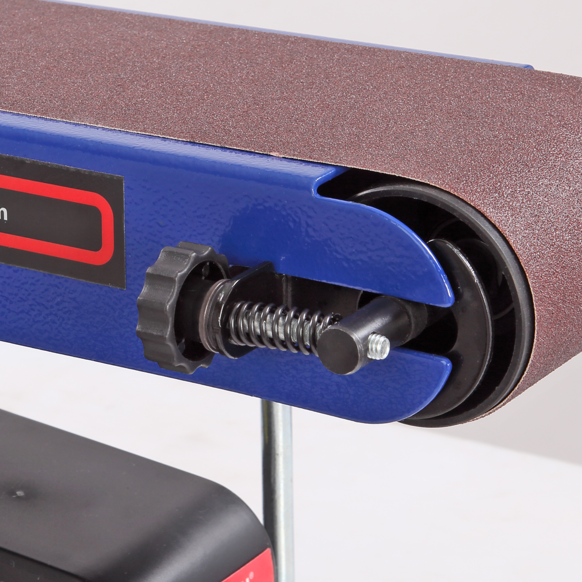 Ленточный блок поворотный, в зависимости от задач можно установить угол наклона от 0 до 90 град. Для удобства имеется рычаг быстрого натяжения и ослабления шлифовальной ленты.