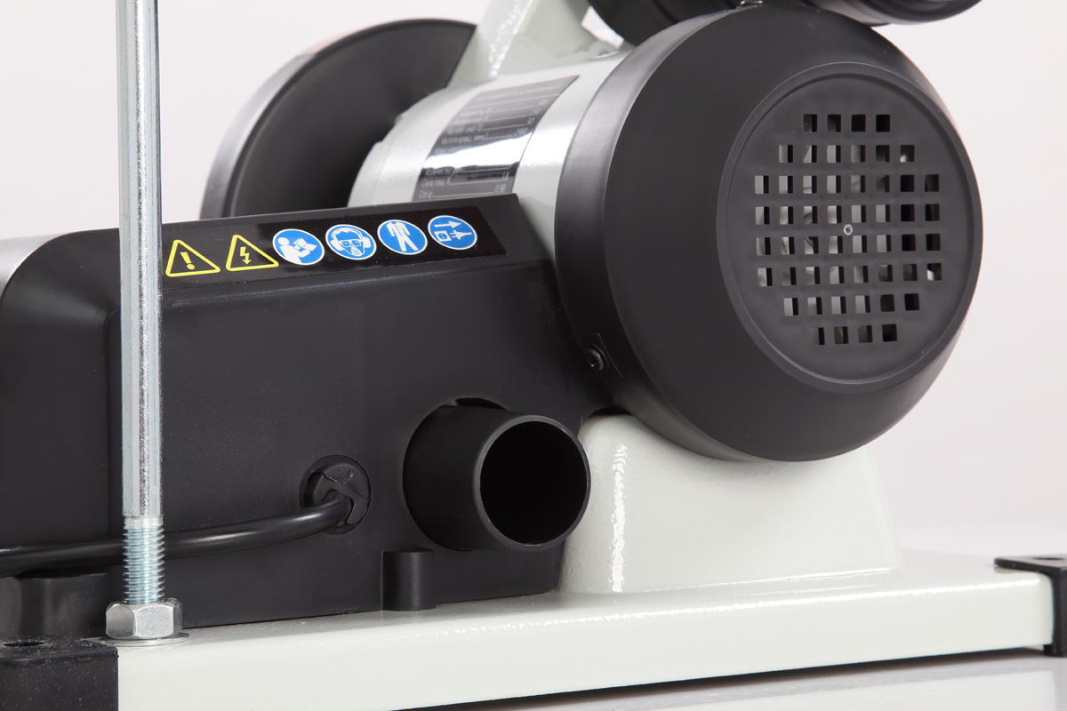 Корпус станка составной: сталь и пластик. Для подключения систем аспирации имеются 2 патрубка.