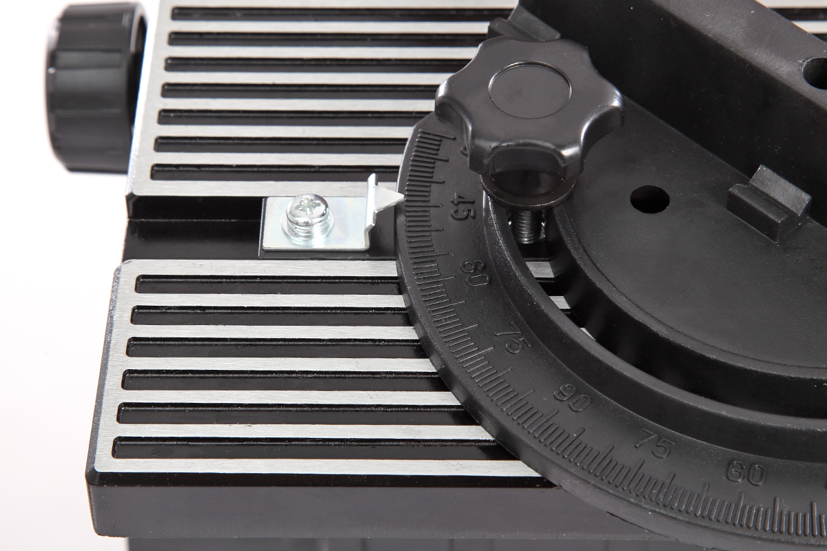 На дисковый шлифовальный узел установлен алюминиевый рабочий стол с П-образным пазом для углового упора. Угол наклона стола от 0 до 45 град.