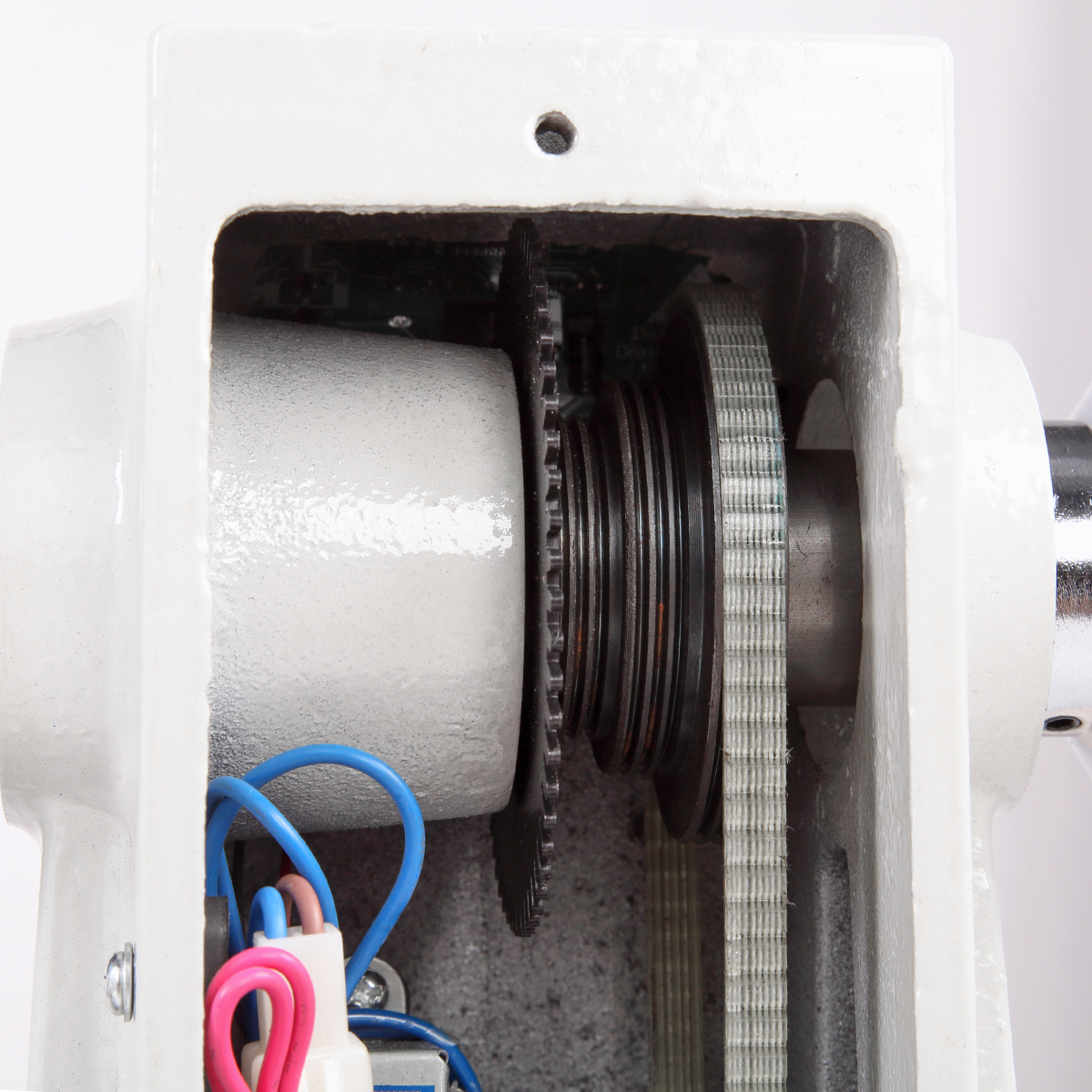 Коллекторный двигатель (550 Вт) с тремя диапазонами скоростей: 650÷1430, 1240÷2790, 1600÷3800 об./мин. Значение оборотов выводится на электронное табло. Регулировка оборотов внутри диапазона – плавная, для этого имеется ручка над выключателем.