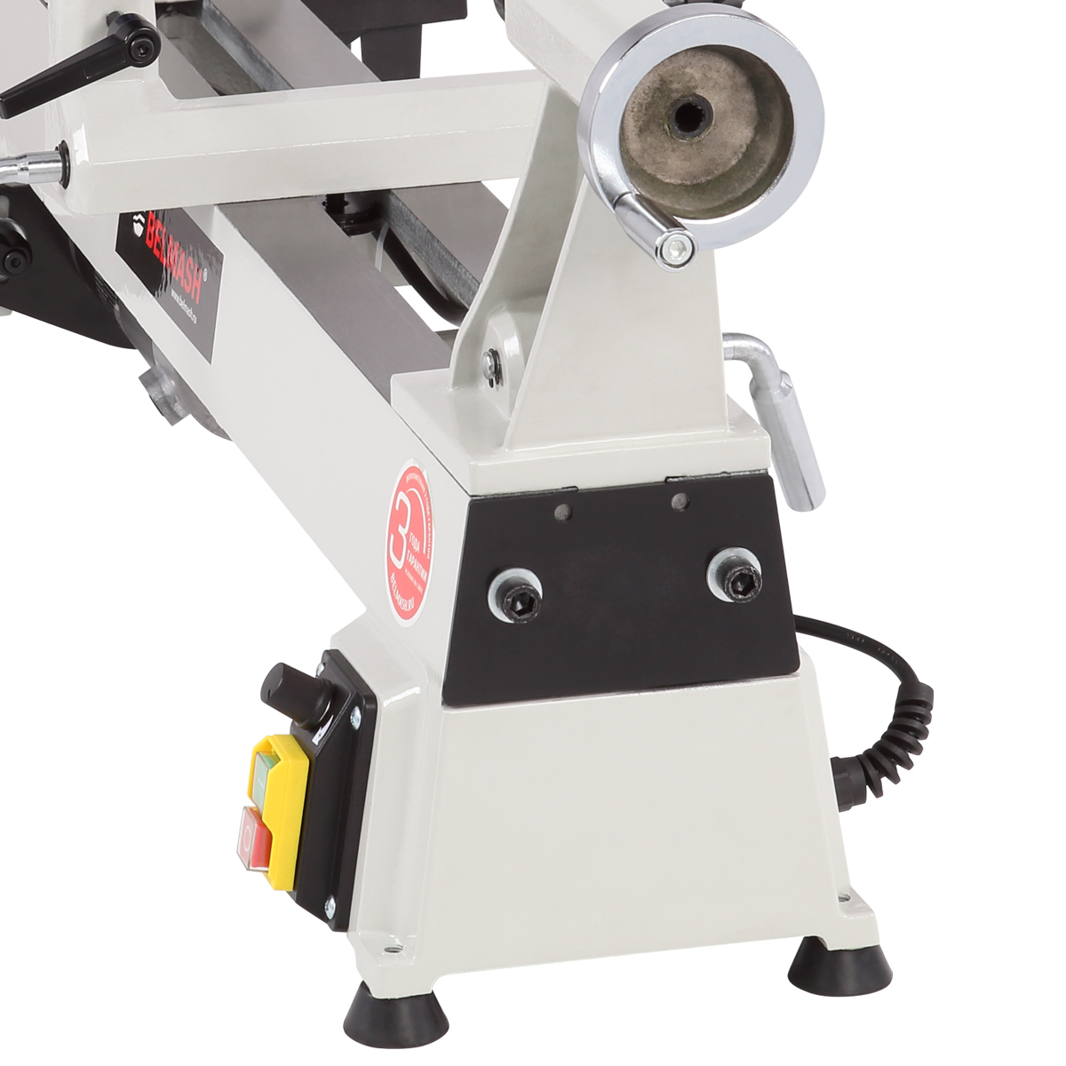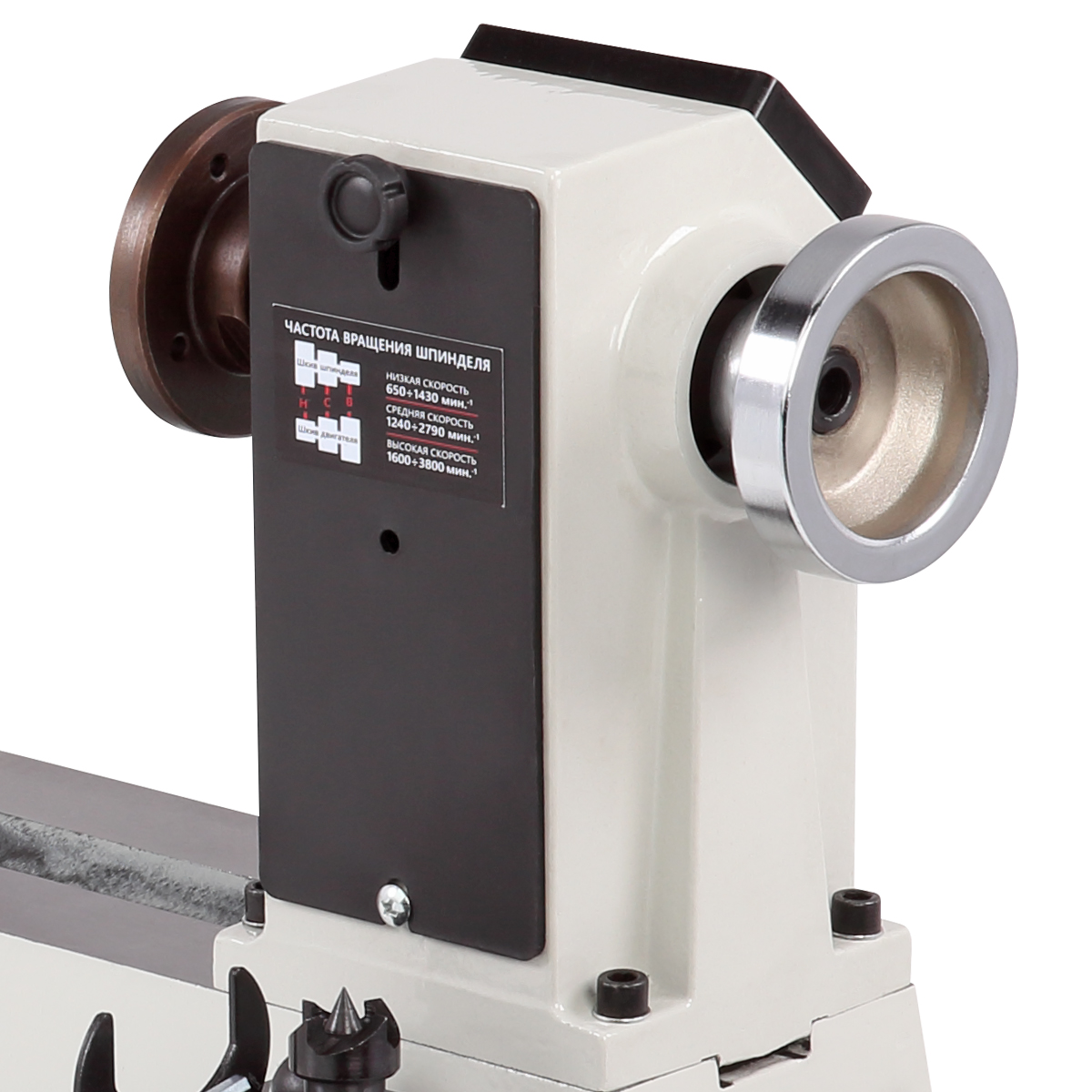 Массивная конструкция станины из чугунного литья гарантирует работу с минимумом вибраций. Для обеспечения плавного хода, направляющие станины отшлифованы с высокой точностью. Наибольший диаметр устанавливаемой заготовки составляет 305 мм, расстояние между центрами - 535 мм, максимальный диаметр обработки над основанием подручника - 230 мм. Шпиндель вращается в трех диапазонах скоростей – 650÷1430, 1240÷2790, 1600÷3800 об./мин, в зависимости от положения ремня на ступенях шкивов.