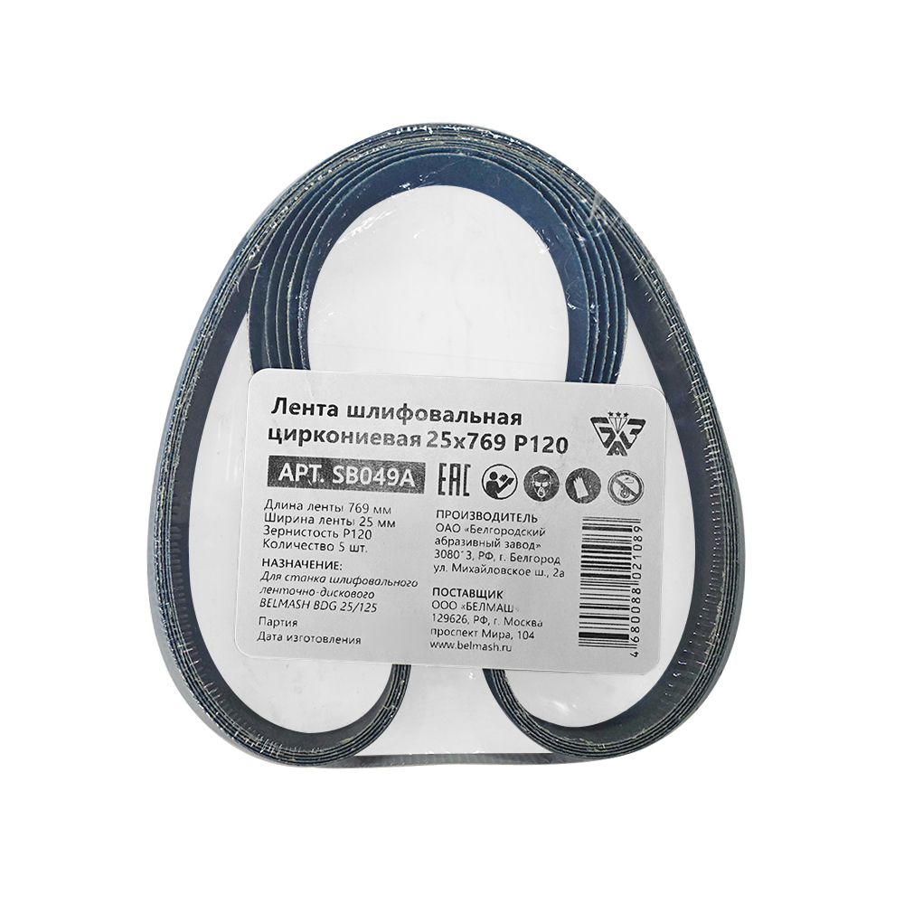 Длина шлифовальной ленты : 769 мм |Ширина шлифовальной ленты : 25 мм |Зернистость : P120 |Габаритный размер (Д × Ш × В) : 140 x 160 x 25 мм |Применение : BELMASH BDG 25/125 |