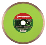 Диск алмазный сплошного типа для мокрой резки по кафелю, керамике и керамической плитке позволяет получить ровные края без сколов и трещин. Self-sharpening technology -Технология самозаточки позволяет диску сохранять высокую скорость реза даже при длительной работе. Тело диска из стали марки 65Mn и метод горячей опрессовки при производстве алмазных дисков увеличивает его износостойкость и срок эксплуатации. Правильно подобранные компоненты металлической связки обеспечивают постепенный равномерный износ алмазного слоя.