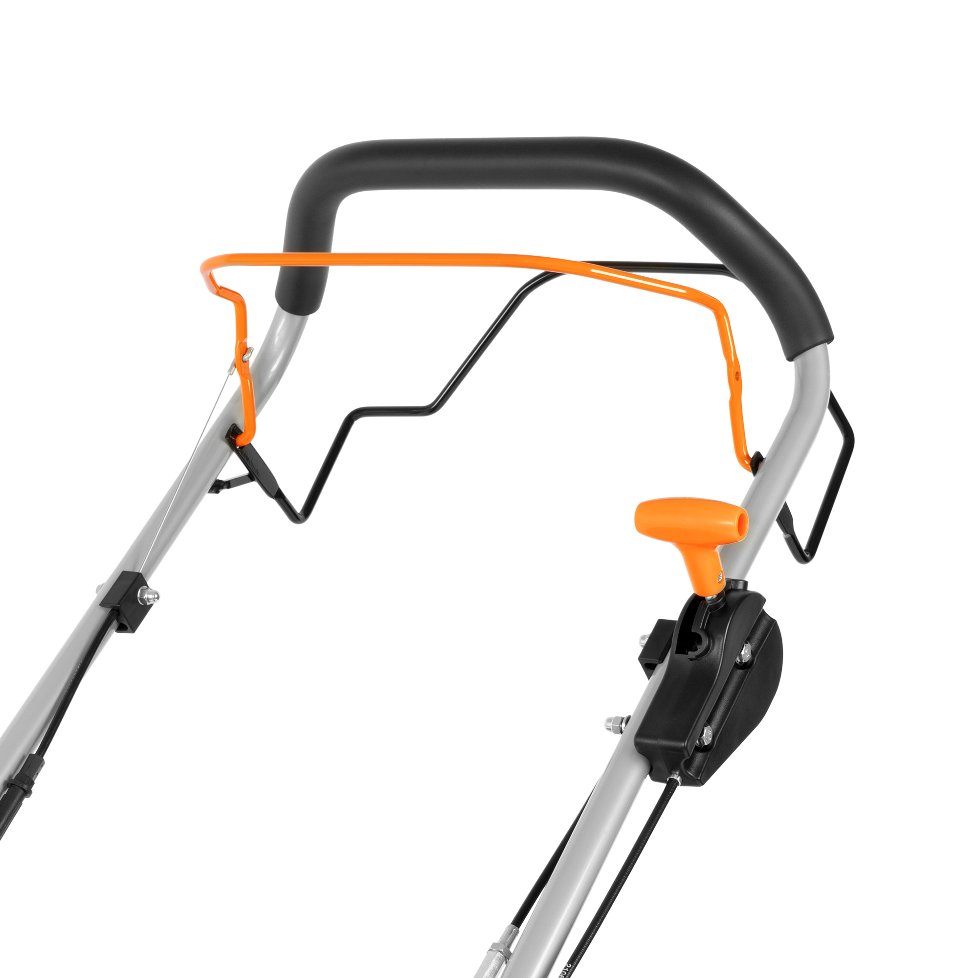 Привод на колеса обеспечивает легкое и комфортное управление газонокосилкой. Рычаг управления вариатором, расположенный на эргономичной панели, позволяет подобрать оптимальную скорость движения в зависимости от условий работы.