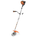 Режущий диск изготовлен из высокопрочной стали с твердосплавными напайками. 40 зубьев позволяют использовать его для кошения жесткой травы, кустарника и тонких стволов деревьев.