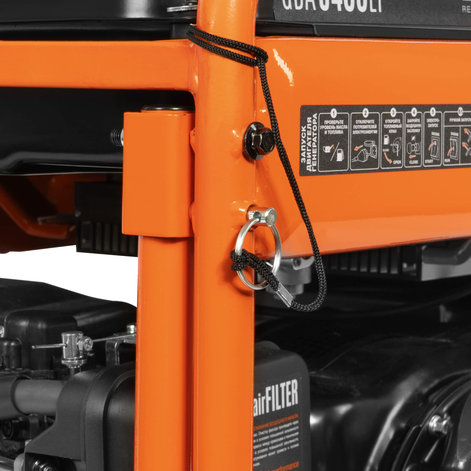 Прочная металлическая рама защищает от повреждения основные узлы генератора, а также упрощает его транспортировку.