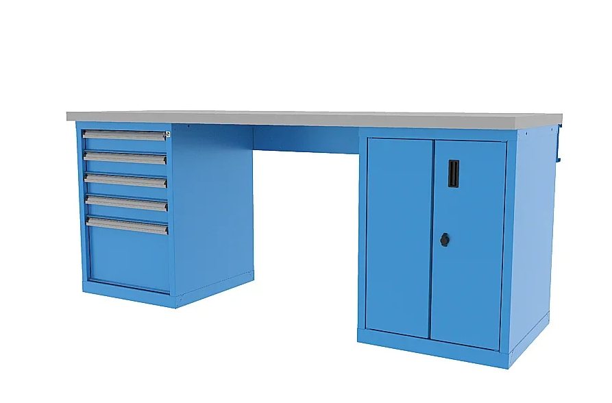 имеется возможность менять расположение тумб и дополнительно оснащать верстак перфорированными панелями, системой освещения и другими опциями.