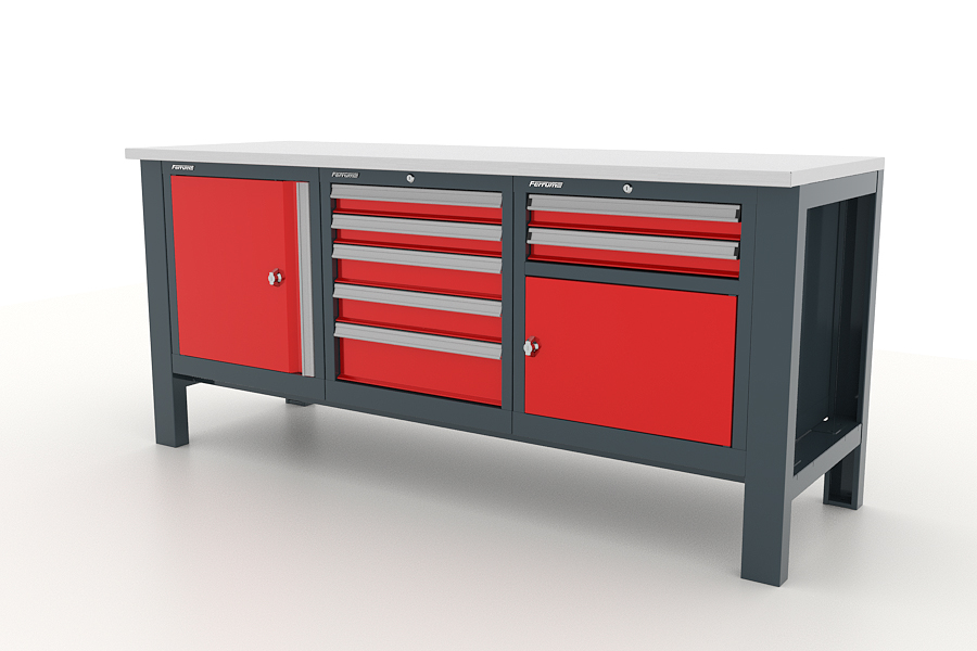 Промышленный металлический верстак с тремя тумбами Ferrum серии Premium предназначен для проведения слесарных и других работ, а также хранения инструмента и принадлежностей в условиях профессиональных автосервисов, слесарных мастерских, ремонтно-восстановительных предприятий, автохозяйств, производств и т.д.