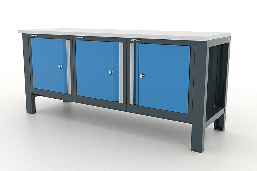 Промышленный металлический верстак с тремя тумбами Ferrum серии Premium предназначен для проведения слесарных и других работ, а также хранения инструмента и принадлежностей в условиях профессиональных автосервисов, слесарных мастерских, ремонтно-восстановительных предприятий, автохозяйств, производств и т.д.