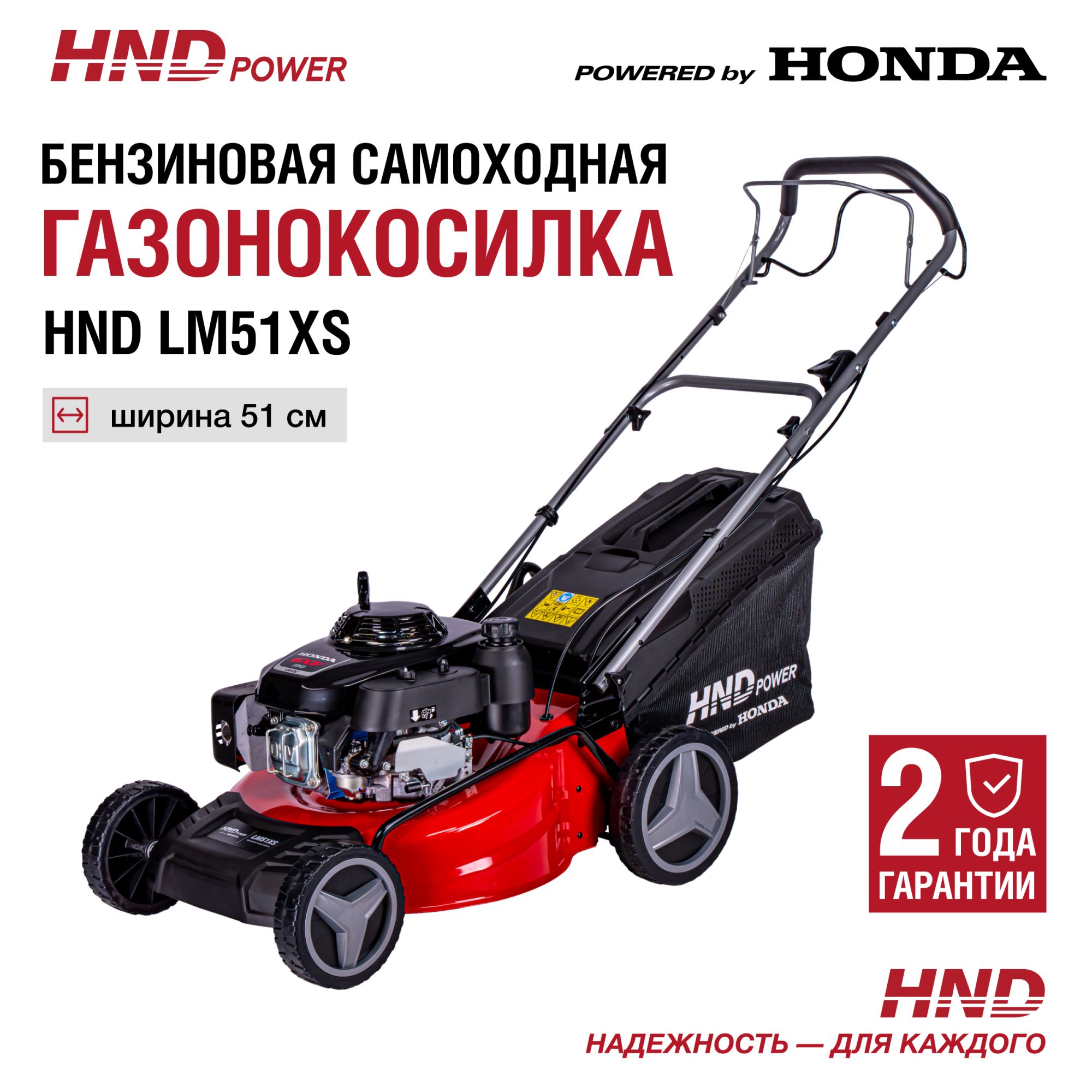 HND LM51XS – бензиновая самоходная газонокосилка с шириной полосы скашивания 51 см, металлической декой с задним выбросом, сочетающая в себе высокую технологичность и производительность двигателей Honda и удобство в управлении, отлично подойдет для скашивания газонной травы на небольших и средних участках размером более 18 соток.