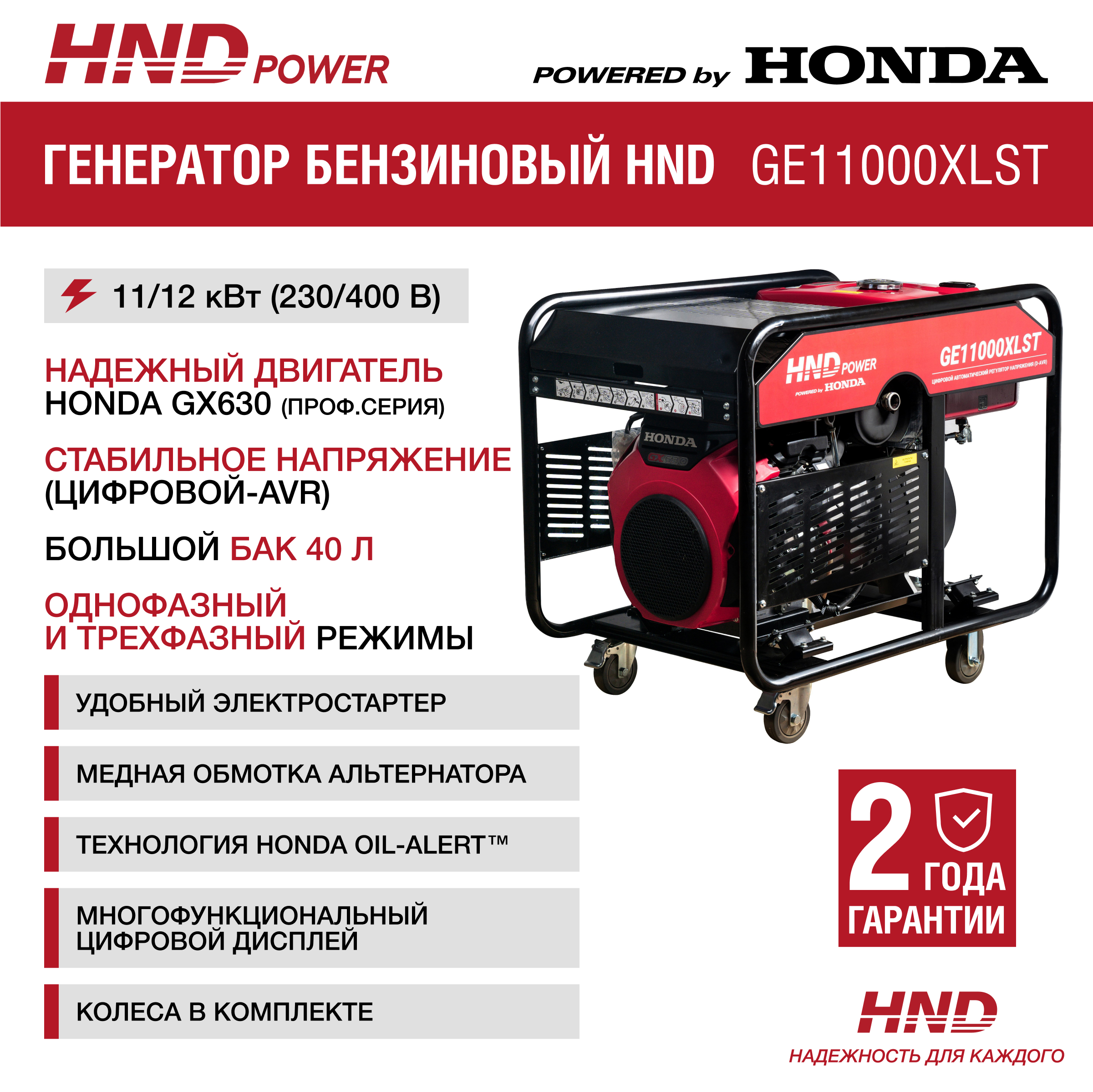 Бензиновый генератор HND GE11000XLST (с двигателем Honda, 11 кВт)
