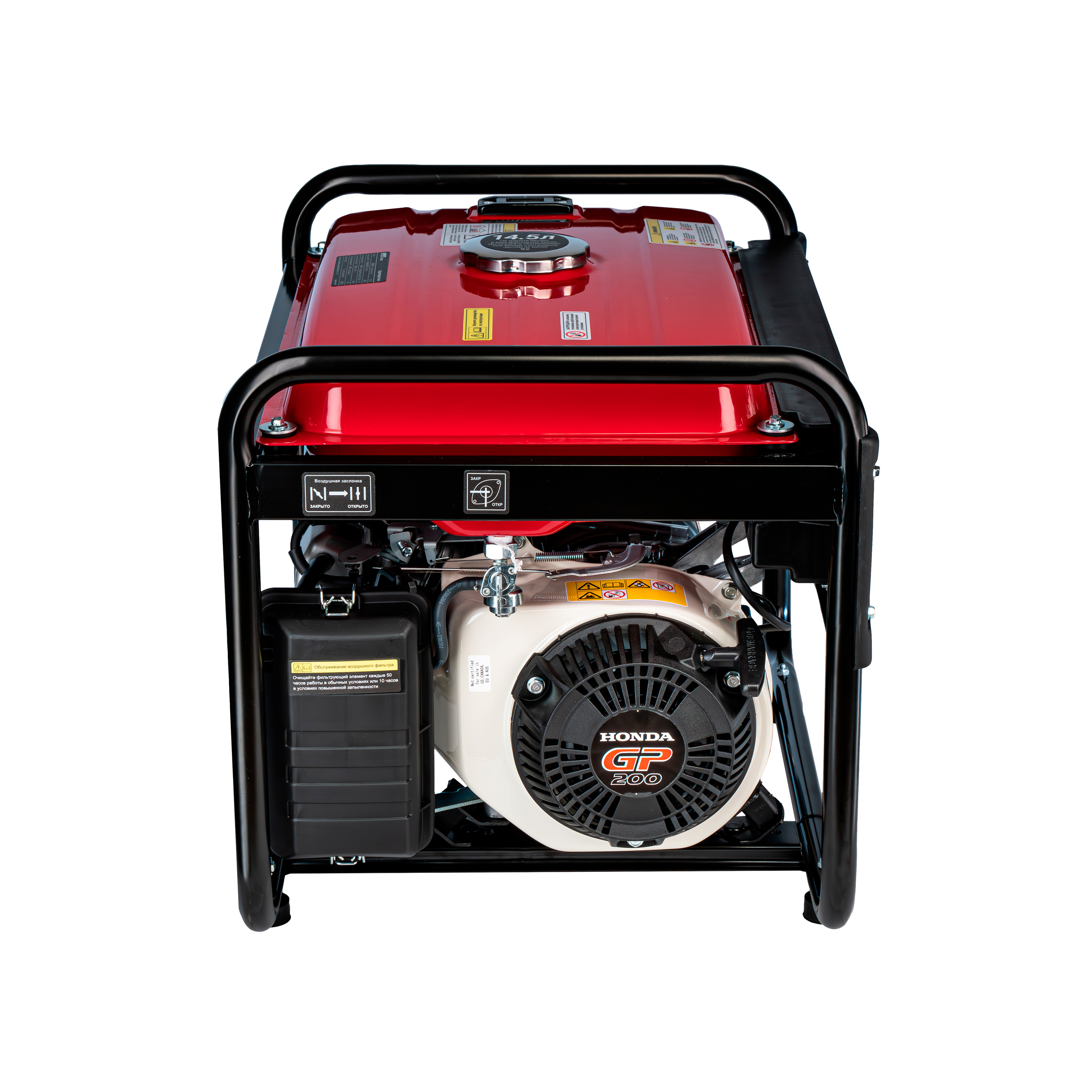 Генератор оснащен эффективным четырехтактным двигателем Honda GP160, имеющим OHV-дизайн, который дает превосходный тепловой баланс, что способствует снижению деформации цилиндра, снижению расхода масла и увеличению срока службы двигателя, отличается высокой надежностью и простым запуском в любую погоду, а также после длительного хранения, благодаря автоматической системе декомпрессии.