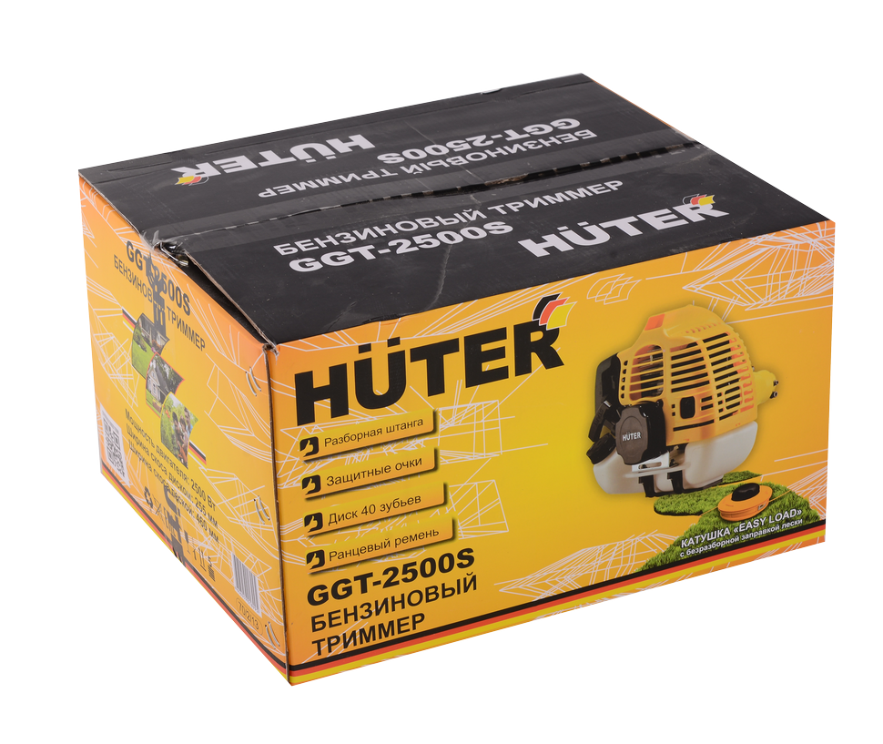 Бензиновый триммер Huter GGT-2500S предназначен для скашивания травы, мелких кустарников и сухостоя на участках средней и большой площади. Конструктивно данная модель представляет собой классический бензотриммер с алюминиевой штангой и ранцевым ремнем. Такая конструкция позволяет использовать его в течение длительного времени без серьезных нагрузок на спину и плечи оператора. Также для этого в нем используется стандартная антивибрационная система. Защитные очки идут в комплекте.Триммер бензиновый Huter GGT-2500S укомплектован катушкой с леской для резки мягкой травы и ножом с твердосплавными напайками для более толстых и прочных стеблей. Катушка 'Easy Load' позволяет заправлять леску буквально за 10 секунд.Работает система от двухтактного двигателя мощностью 2500 Вт с воздушным охлаждением. Хромированная поршневая группа мотора делает конструкцию более надежной и долговечной. Разборная штанга обеспечивает комфортную транспортировку бензотриммера. А система быстрого запуска позволяет легко заводить устройство даже неопытному пользователю.Для приготовления топливной смеси производитель рекомендует использовать фирменное полусинтетическое моторное масло для двухтактных двигателей 'HUTER 2T'.Модель Huter GGT-2500T имеет схожие характеристики, но отличается цельной штангой.Расходные материалы можно найти в категории леска и диски для триммеров.