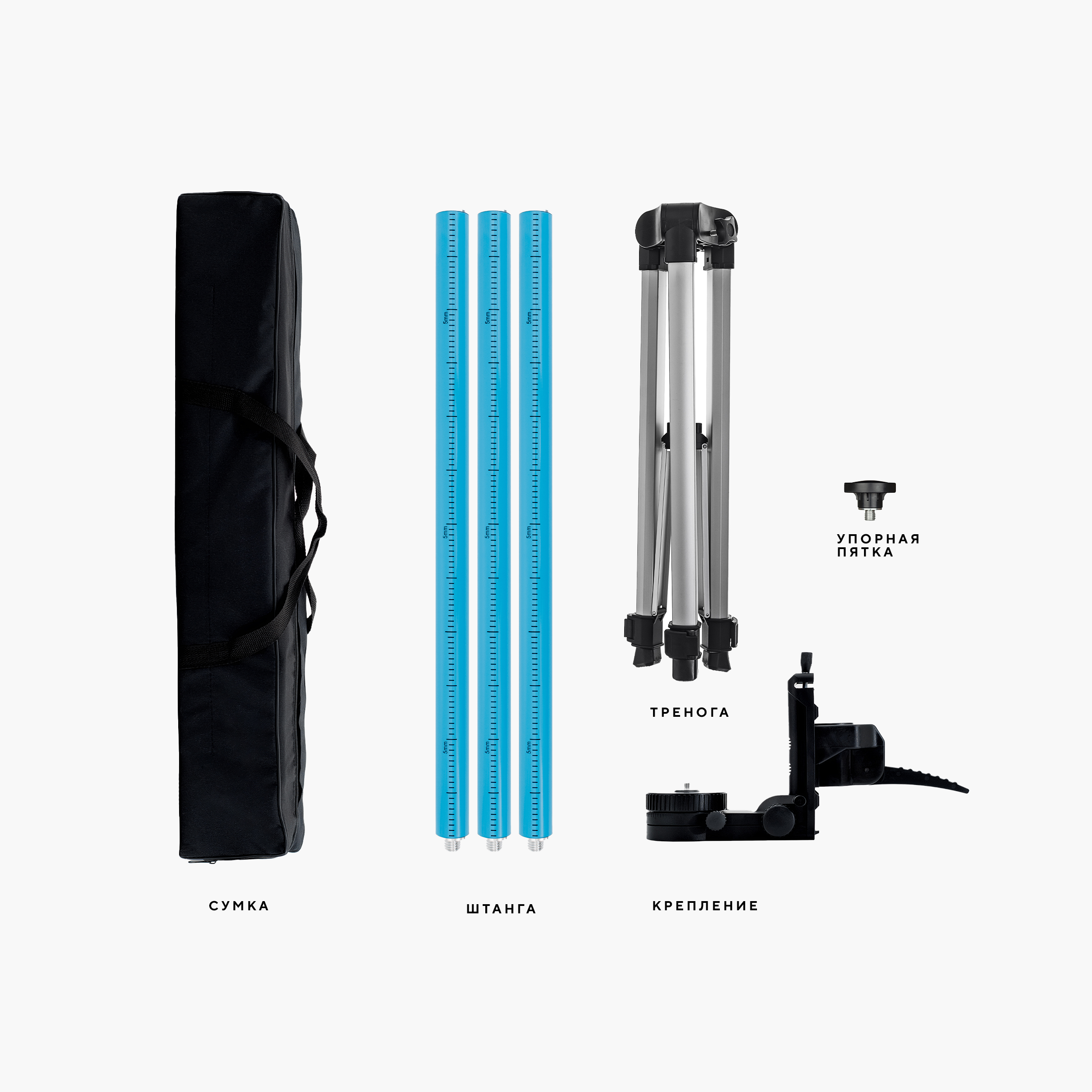 Штатив-штанга элевационный INSTRUMAX LP-300 в комплекте с треногой – алюминиевая штанга состоит из нескольких секций, которые могут быть скручены между собой для работы с разной высотой. Идеально подходит тем, кто выполняет разметку в квартирах и домах с высотой потолков до 3 метров.