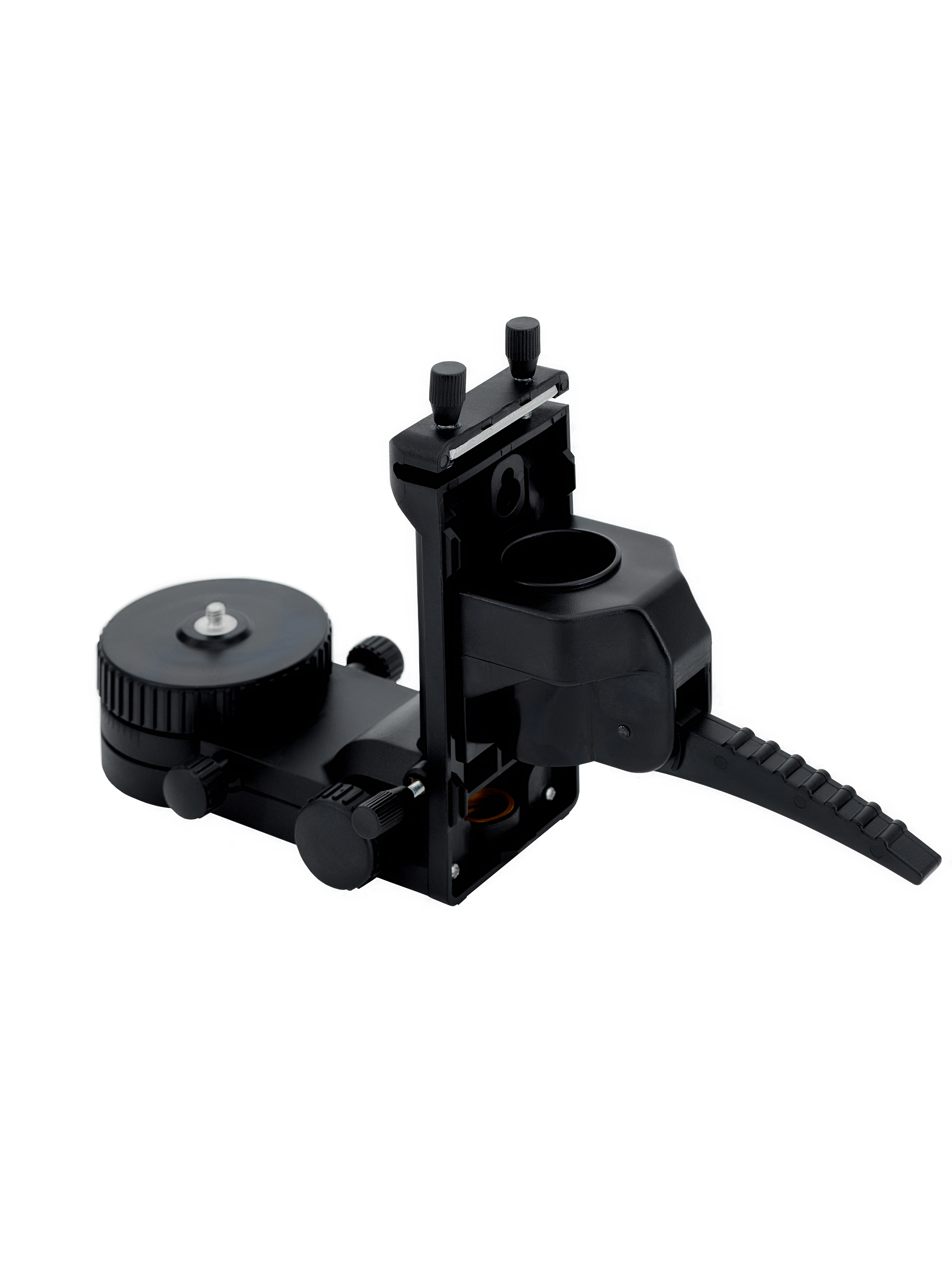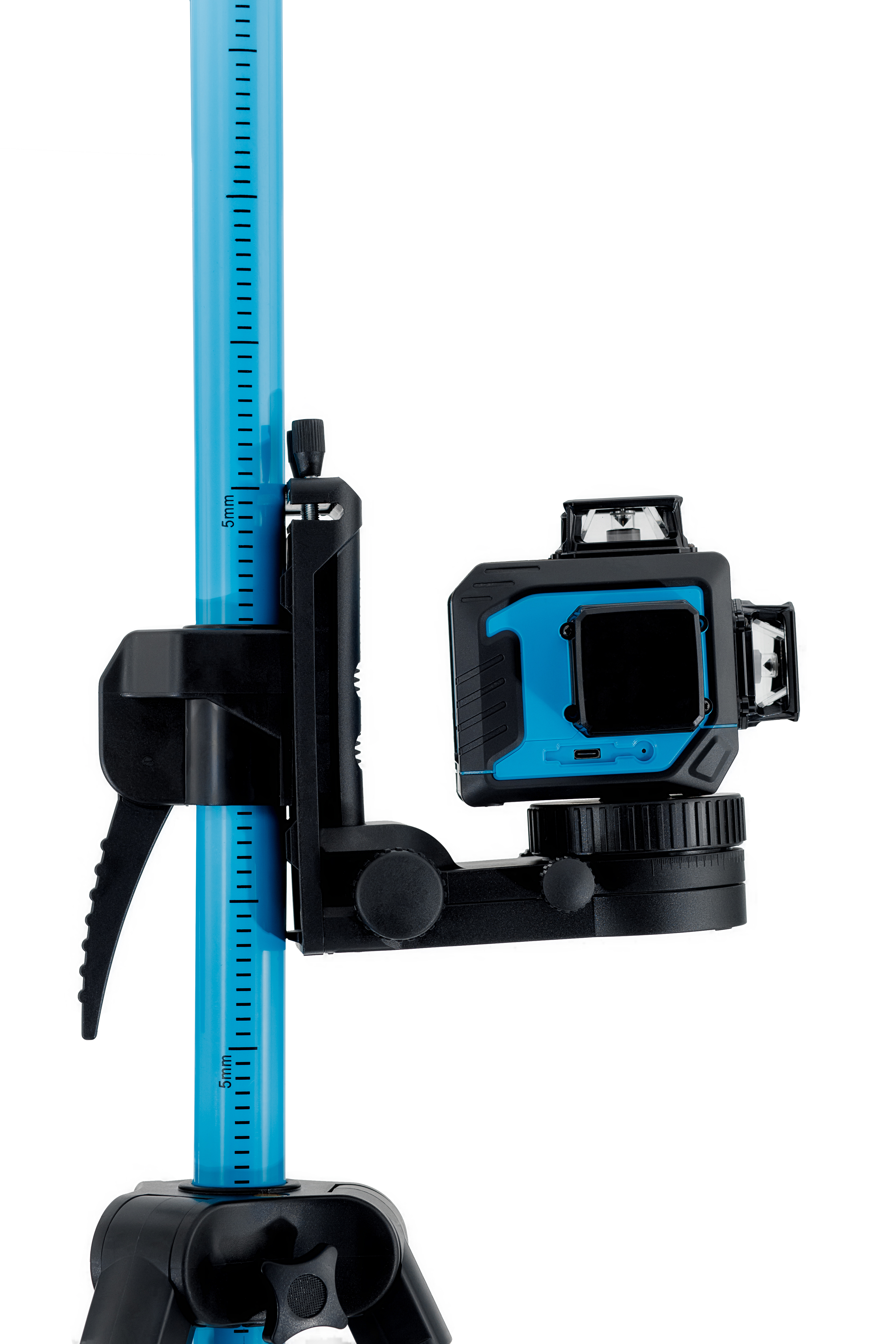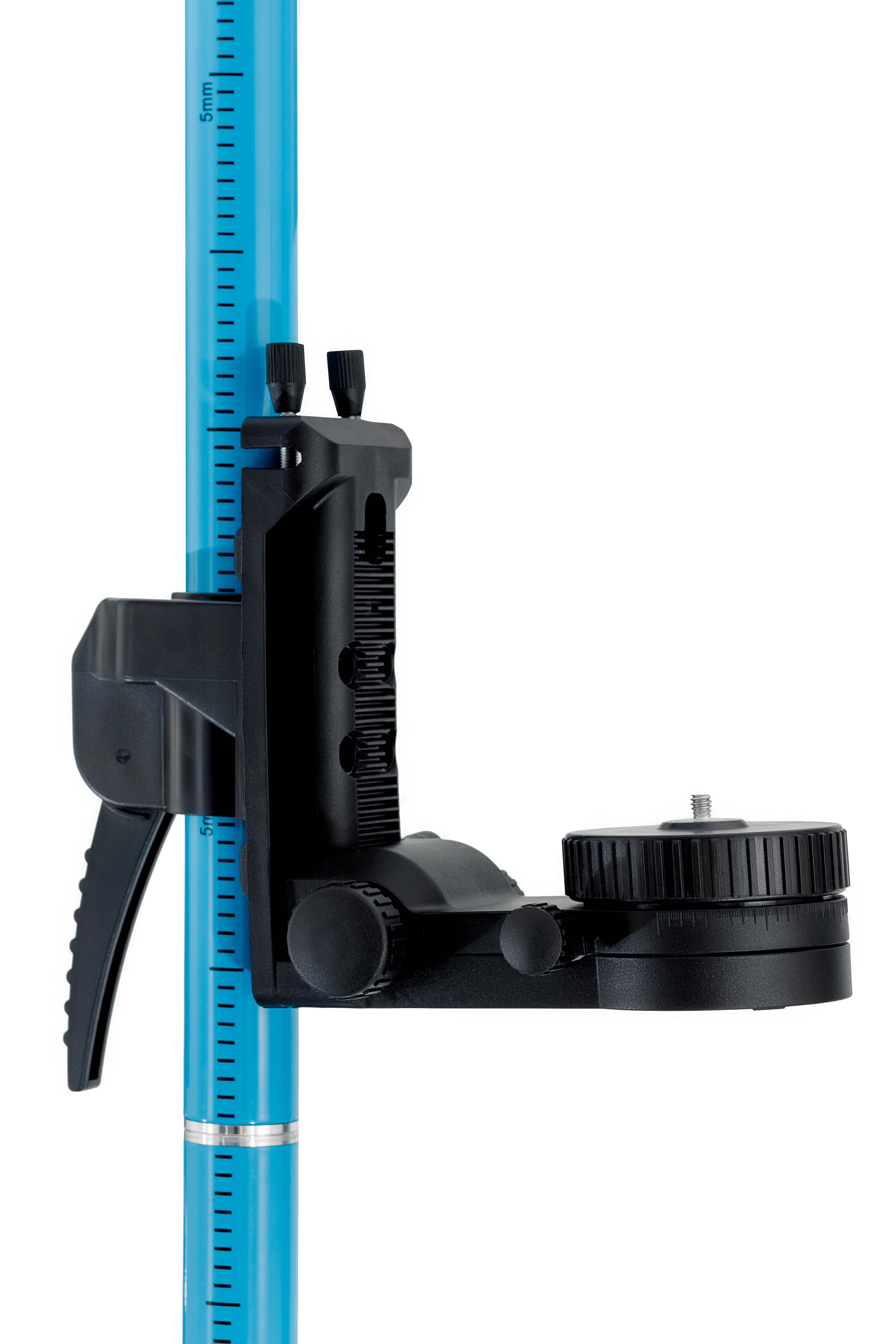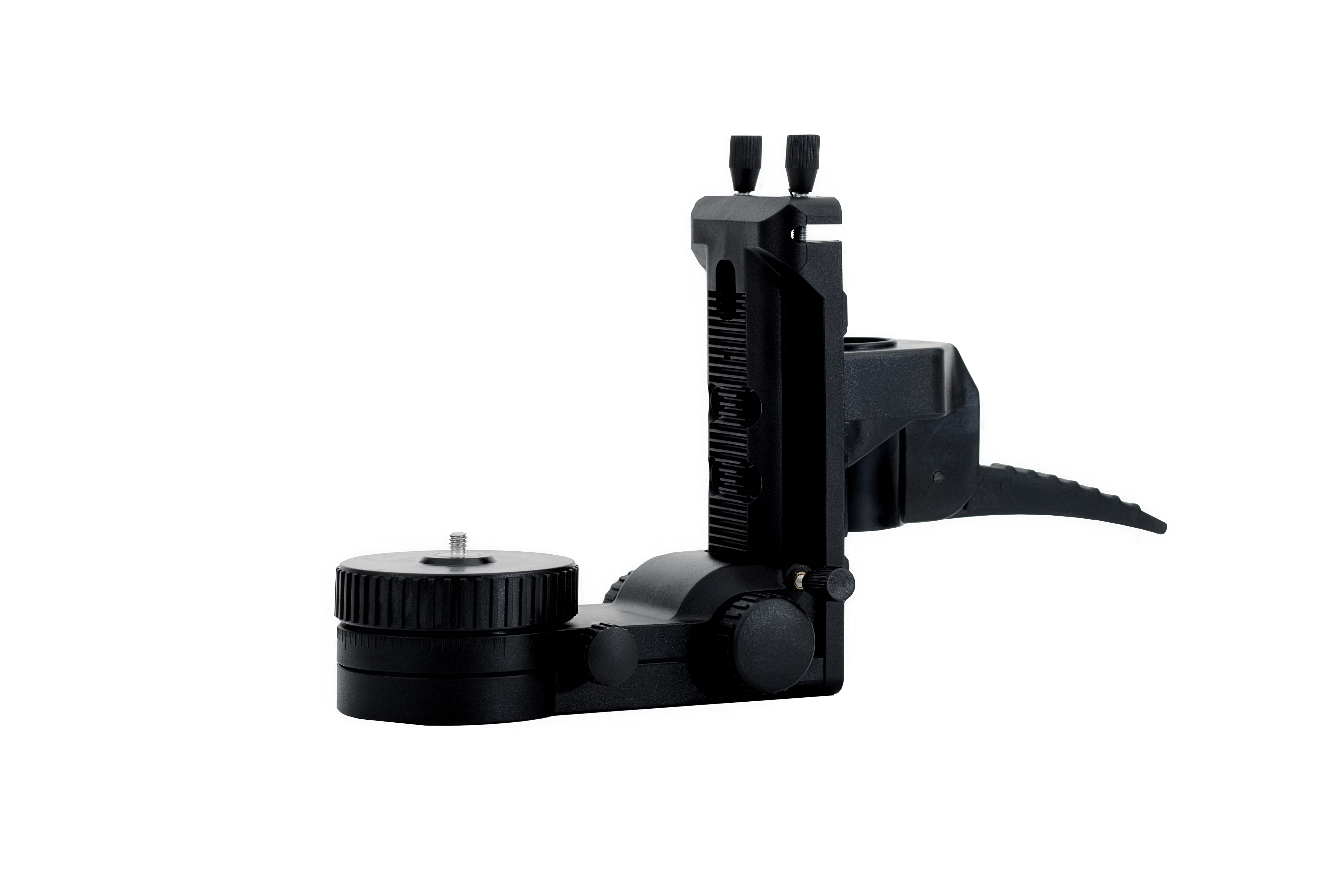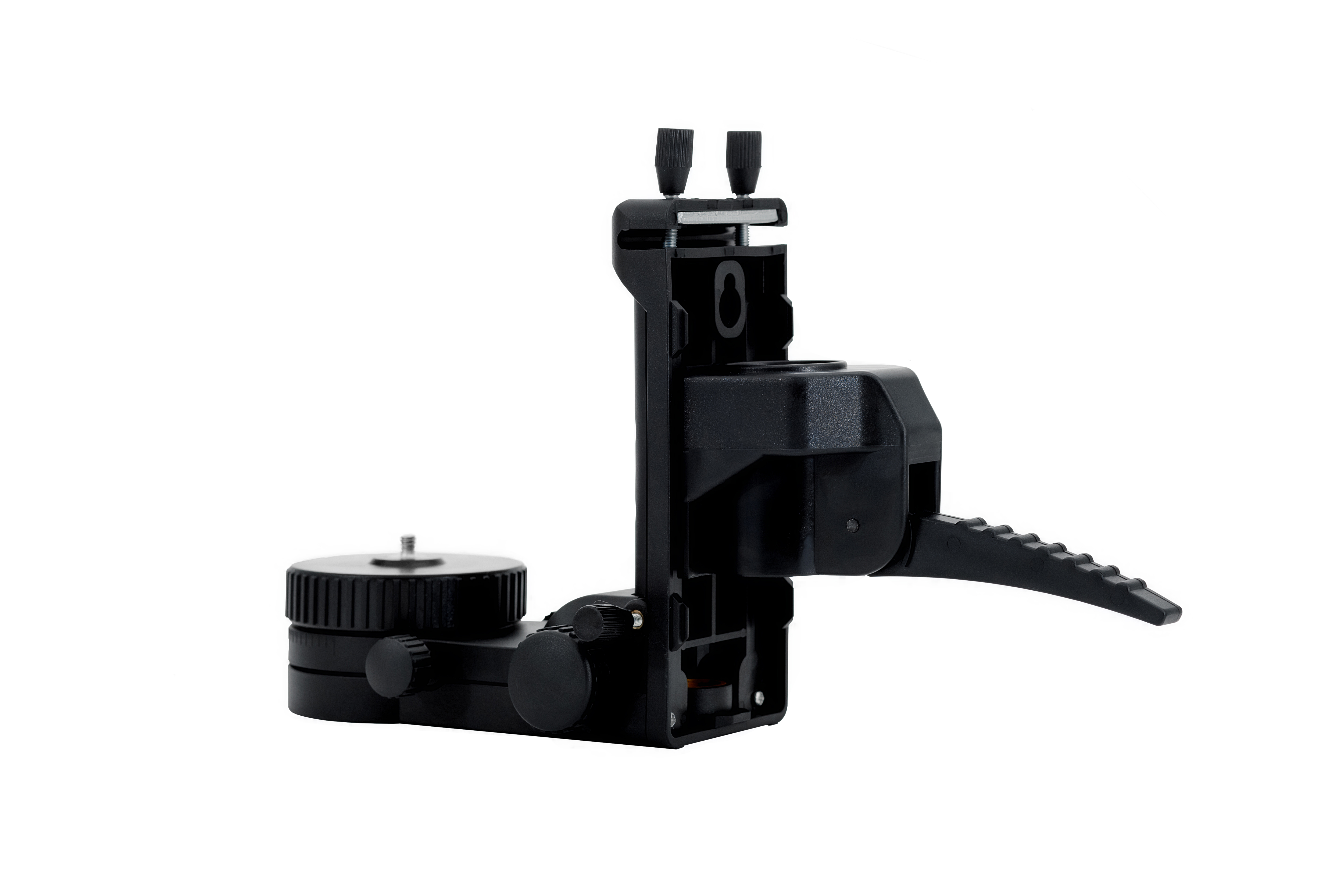 Для крепления лазерных уровней в комплект включено крепление с микролифтом. Для грубого выбора высоты установки прибора используется подвижный фиксатор крепления. Для миллиметровой точности наведения горизонтального луча в диапазоне от 0 до 11 сантиметров используется микролифт. Для точного наведения вертикальных лучей используется поротная площадка с микрометрическим винтом. Крепить можно лазерные уровни с резьбой 1/4 дюйма.