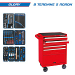 Набор инструментов ''GLORY'' в красной тележке, 152 предмета KING TONY 934-152MRV