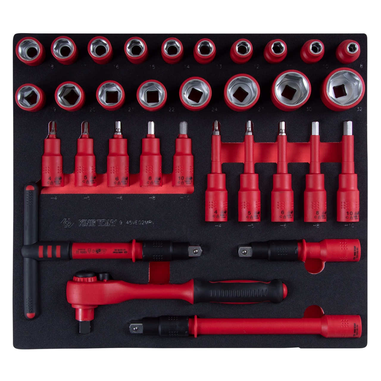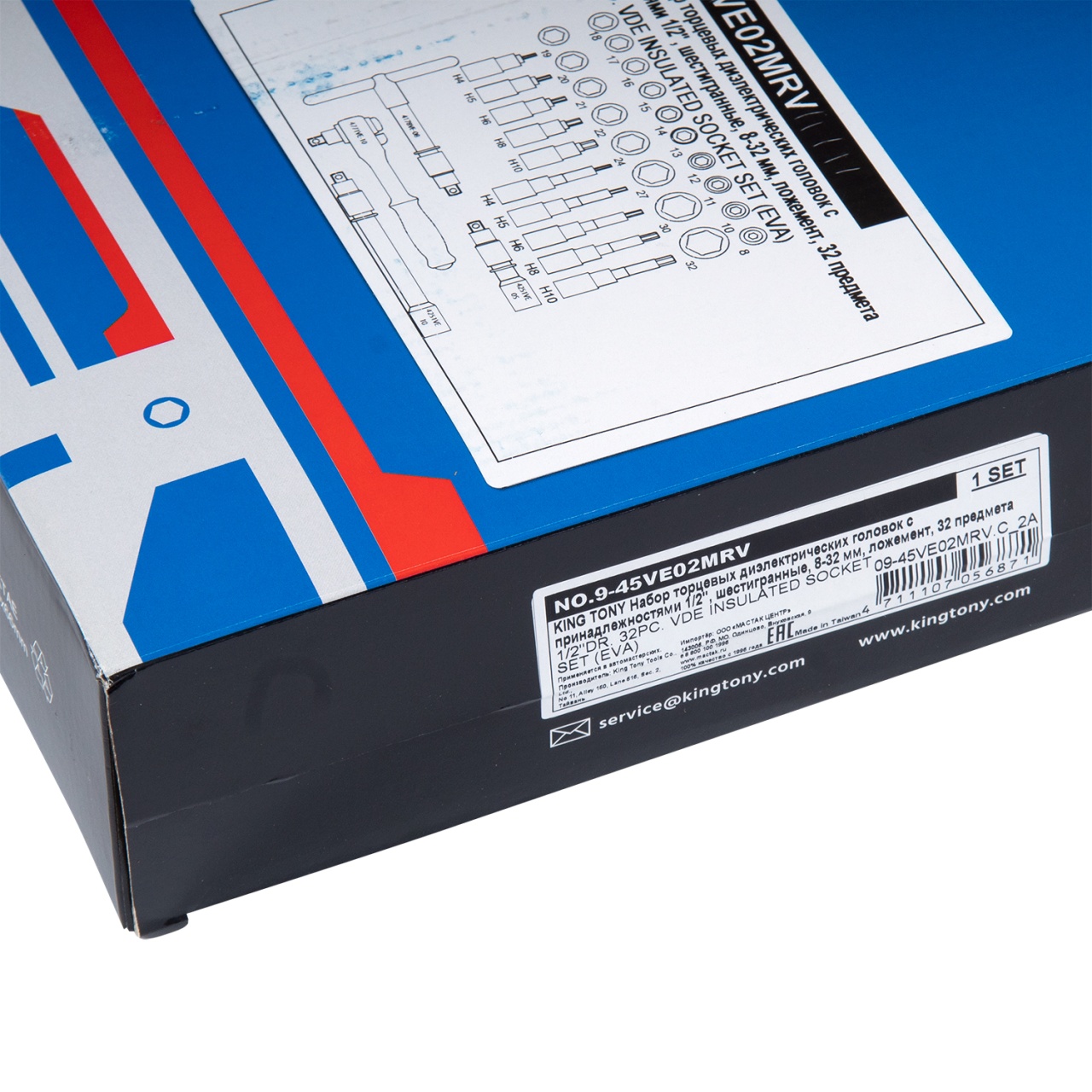 Набор торцевых диэлектрических головок с принадлежностями 1/2'', шестигранные, 8-32 мм, ложемент, 32 предмета KING TONY 9-45VE02MRV