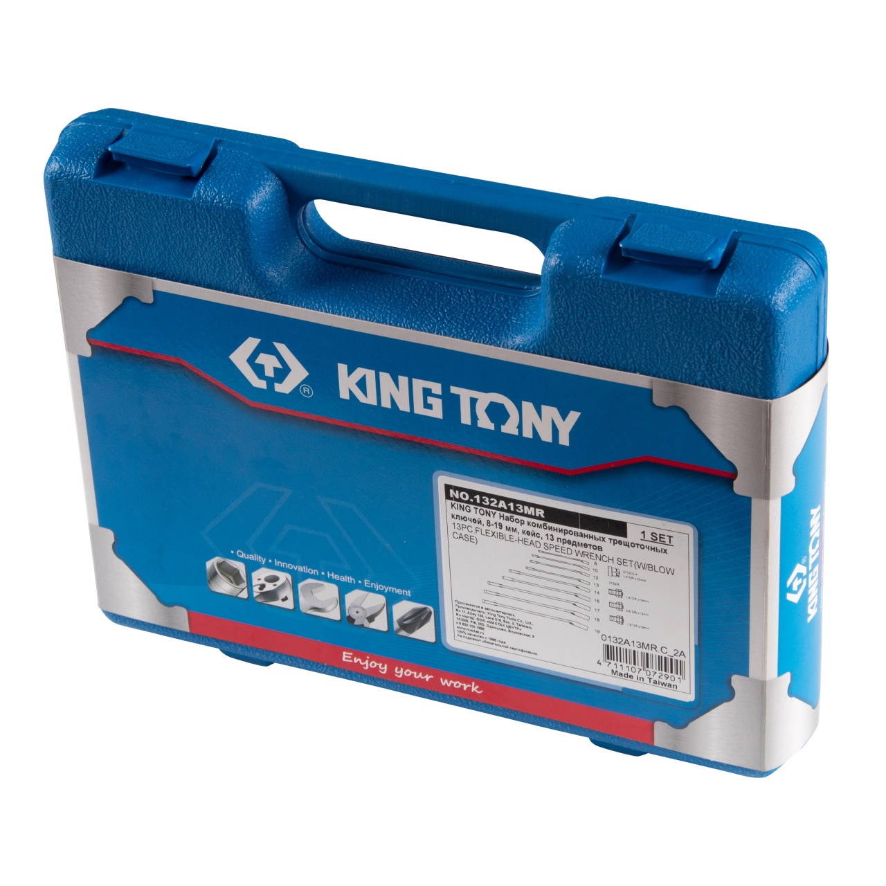 Набор комбинированных трещоточных ключей, 8-19 мм, кейс, 13 предметов KING TONY 132A13MR