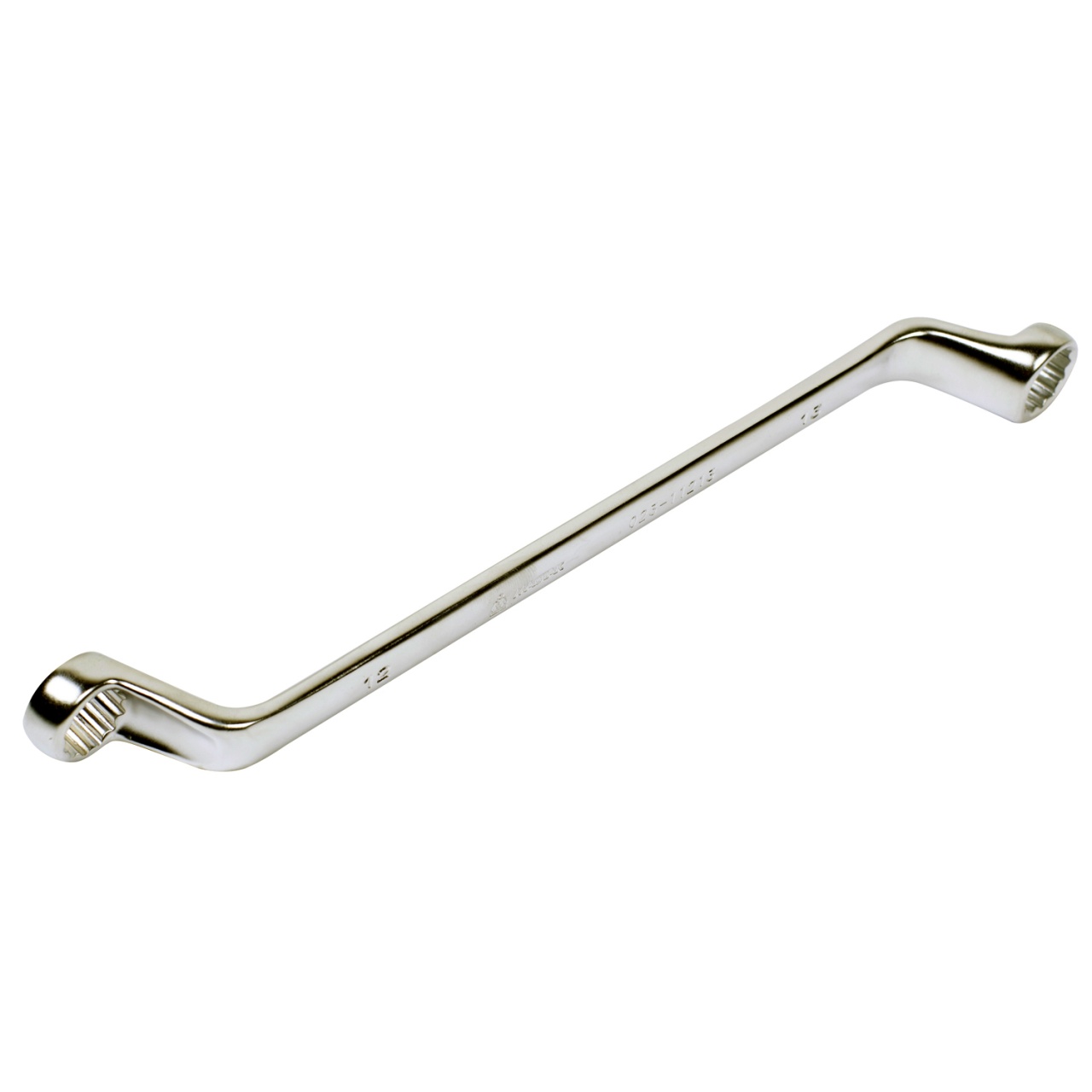 Ключи относятся к накидному типу, двухразмерные, имеют 12-гранный рабочий профиль и специальный изгиб под углом 75°, позволяющий работать с крепежом в углублении или других труднодоступных местах.