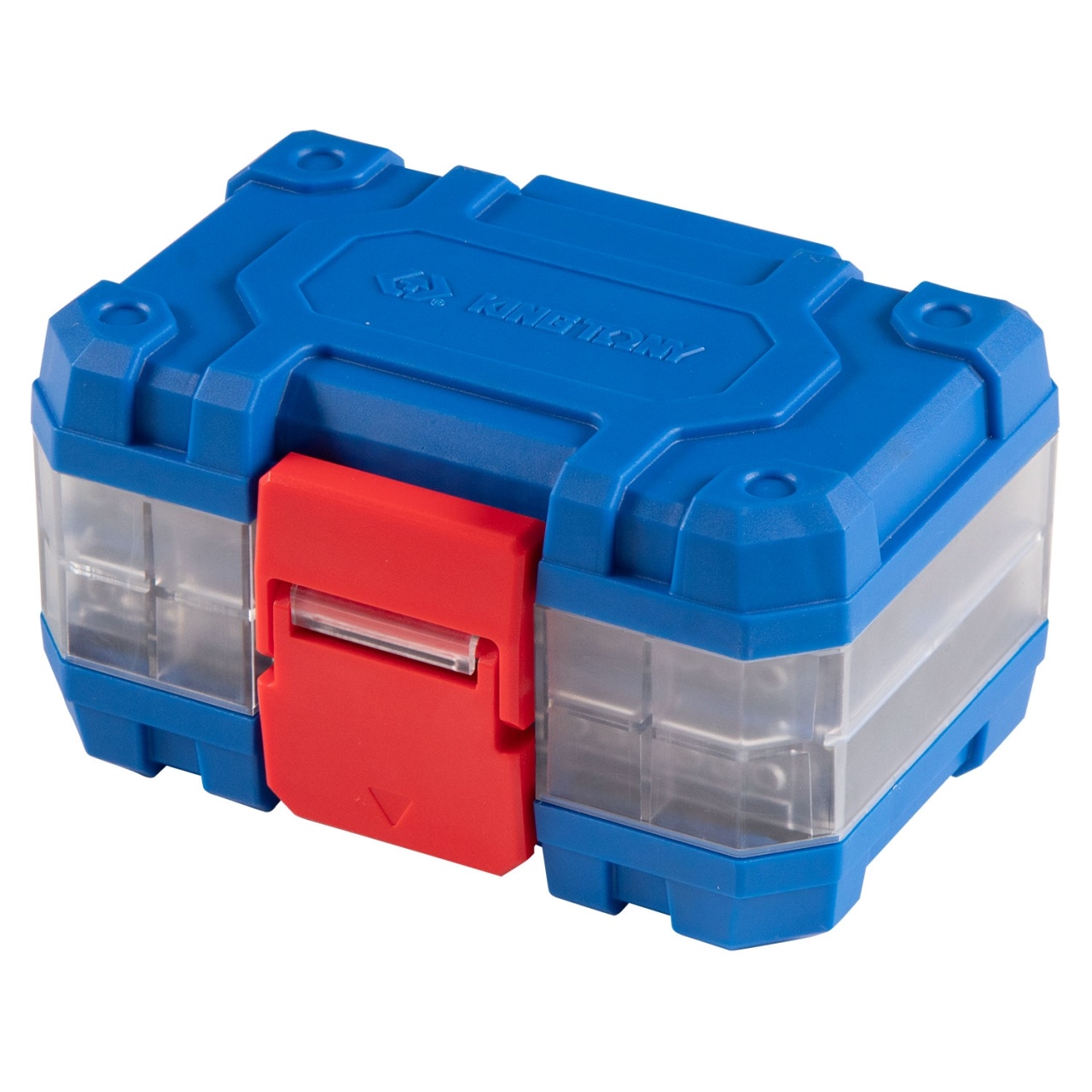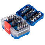 Биты расположены в прочном кейсе, каждый в своей ячейке для удобства и быстрого поиска. Кейс изготовлен из пластика ABS – легкого материала, обладающего высокими прочностными характеристиками, стойкостью к маслам и растворителям. Кейс удобен для хранения вставок и гарантирует сохранность инструмента.