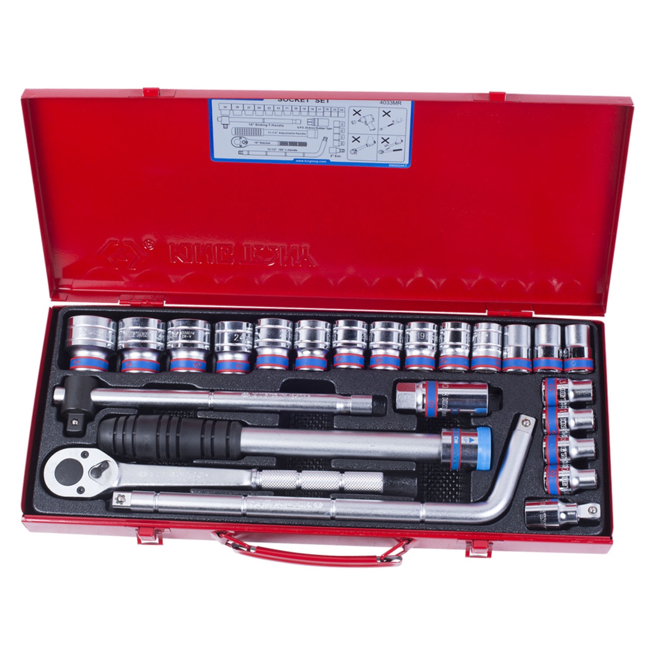 Набор торцевых головок с принадлежностями 1/2'', двенадцатигранные, 10-32 мм, 24 предмета KING TONY 4033MR