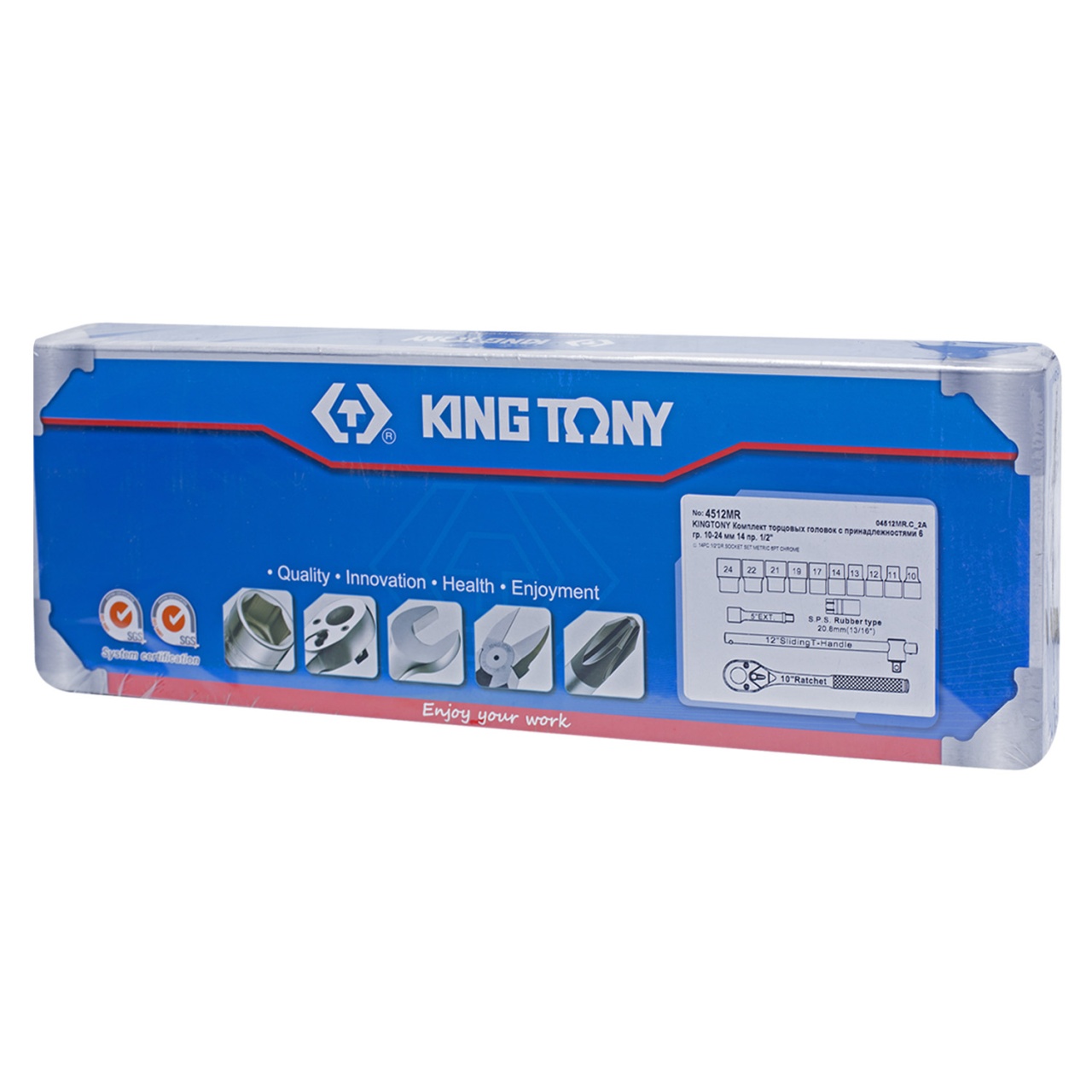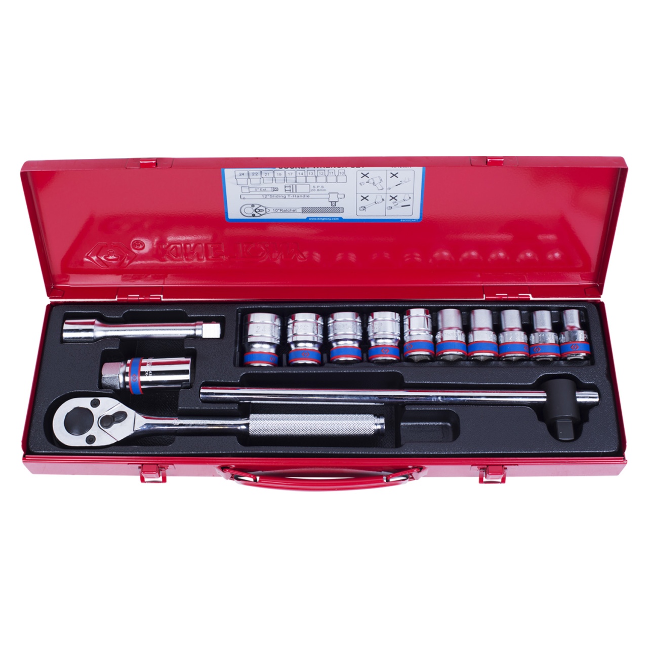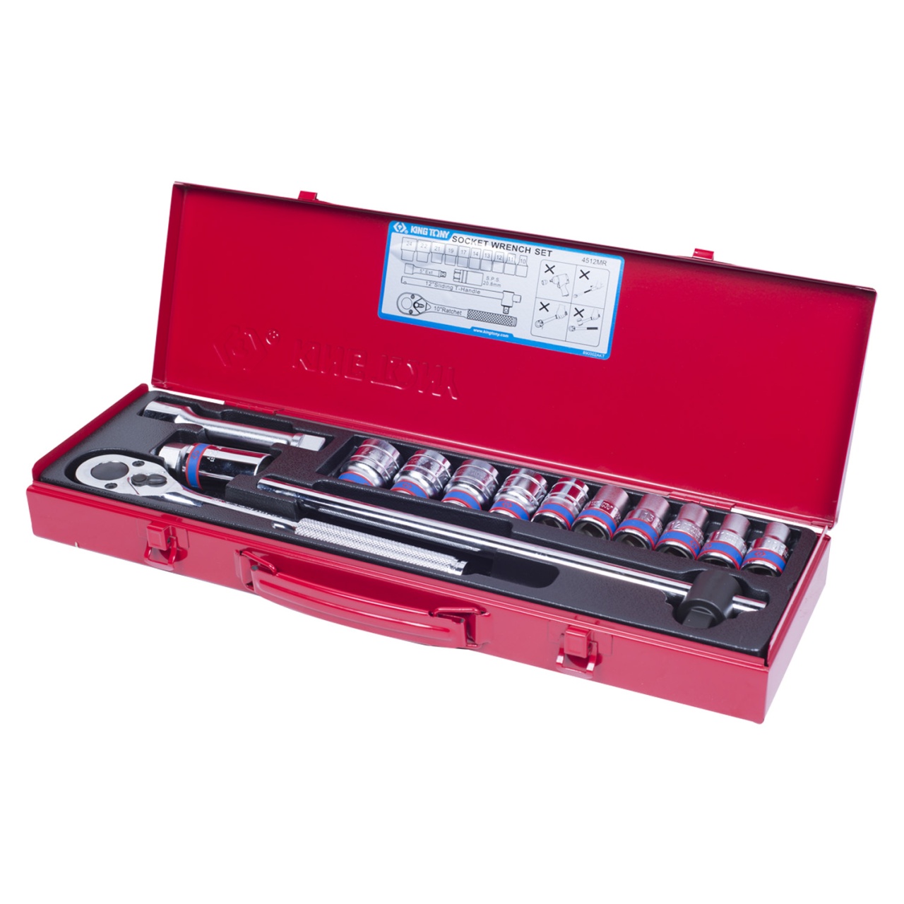 Набор торцевых головок с принадлежностями 1/2'', шестигранные, 10-24 мм, 14 предметов KING TONY 4512MR