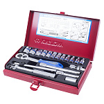 Набор с инструментом торговой марки KING TONY включает в себя торцевые головки, насадки формата 1/4" и принадлежности к ним. Идеально подходит для работы с механизмами небольших габаритов, к примеру, двигателями мотоциклов или скутеров, велосипедов.