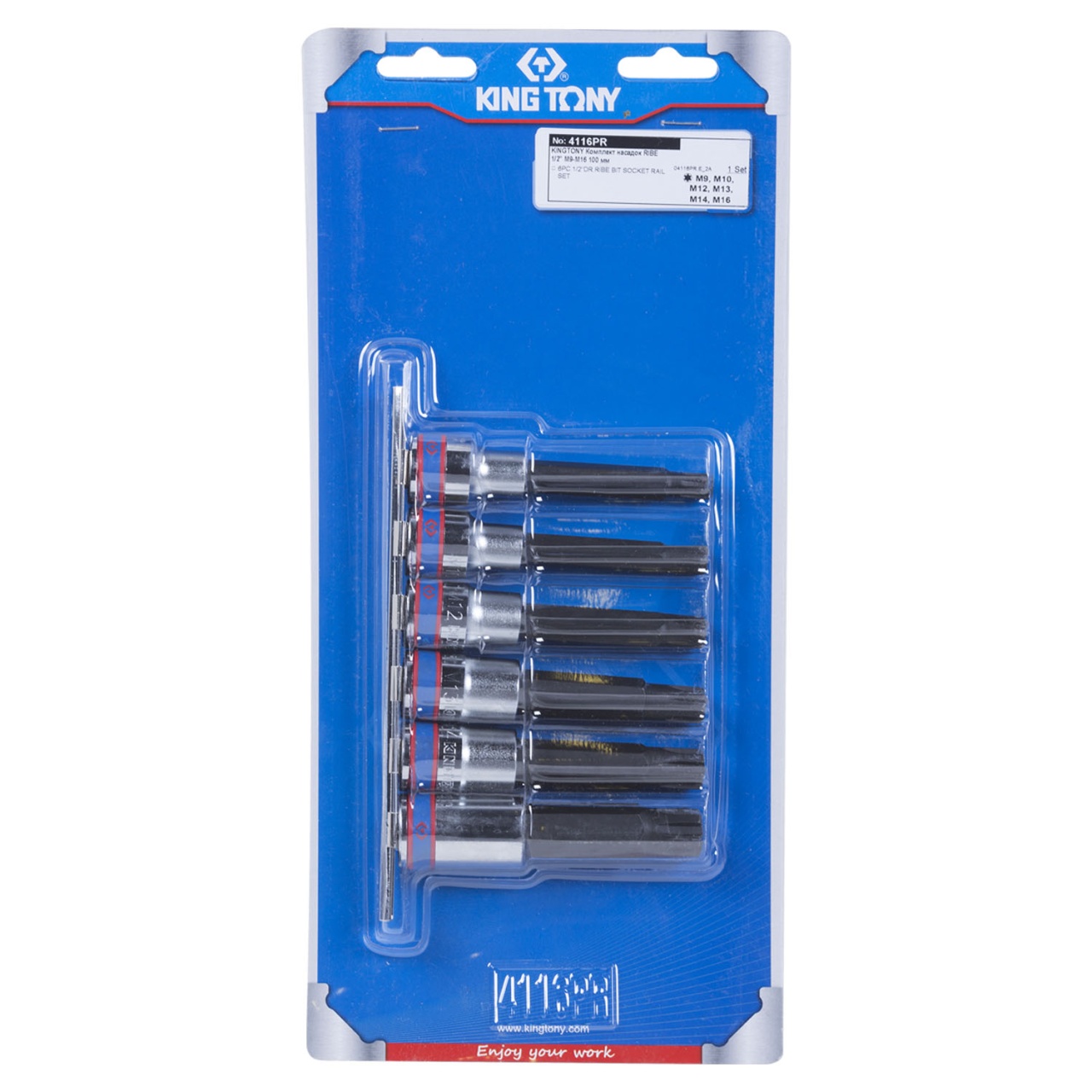 Набор торцевых насадок 1/2'', Ribe, М9-М16, L = 100 мм, 6 предметов KING TONY 4116PR
