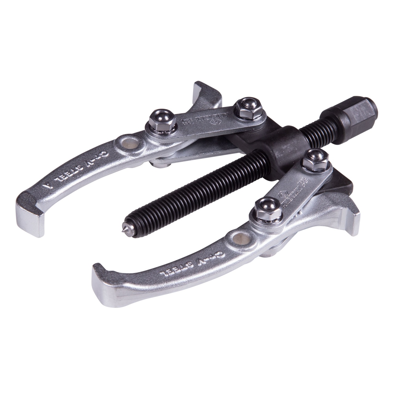 Демонтаж подшипников, шкивов и прочих деталей, запрессованных в обойму или установленных на вал. Применение съёмника помогает демонтировать деталь без перекоса, с соблюдением соосности. Классическая форма и надёжная конструкция съёмника позволяет использовать его в разных отраслях и видах техники.