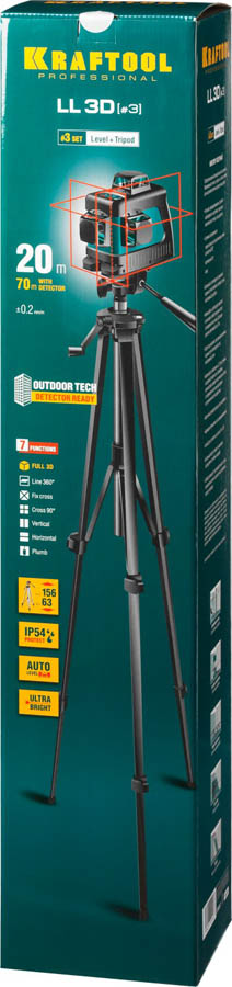 KRAFTOOL линейный лазерный нивелир со штативом LL3D 3 34640-3 Professional