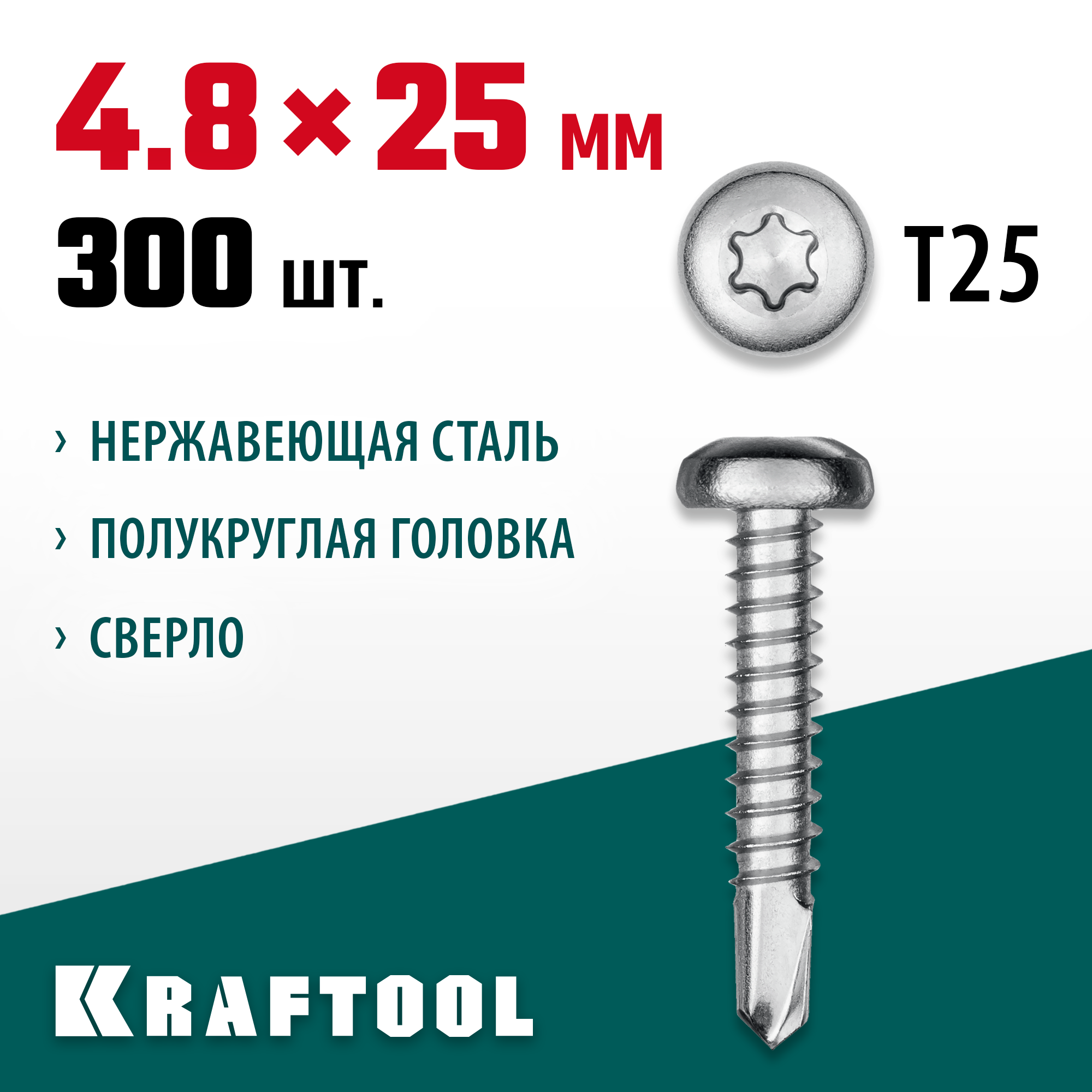 KRAFTOOL 25 х 4.8 мм, 300 шт., нержавеющие саморезы НС-ПК с полукруглой головкой 300931-48-025