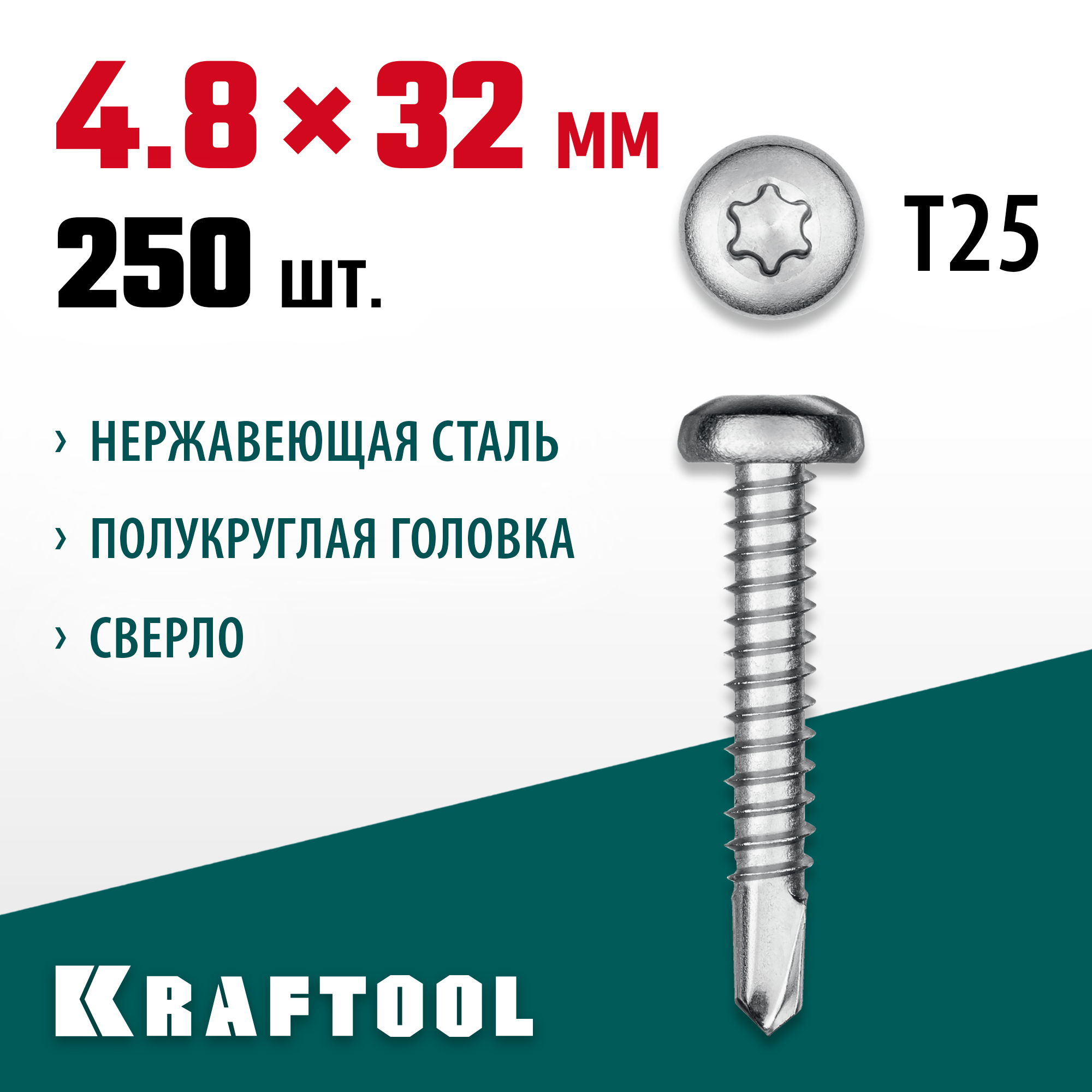 KRAFTOOL 32 х 4.8 мм, 250 шт., нержавеющие саморезы НС-ПК с полукруглой головкой 300931-48-032