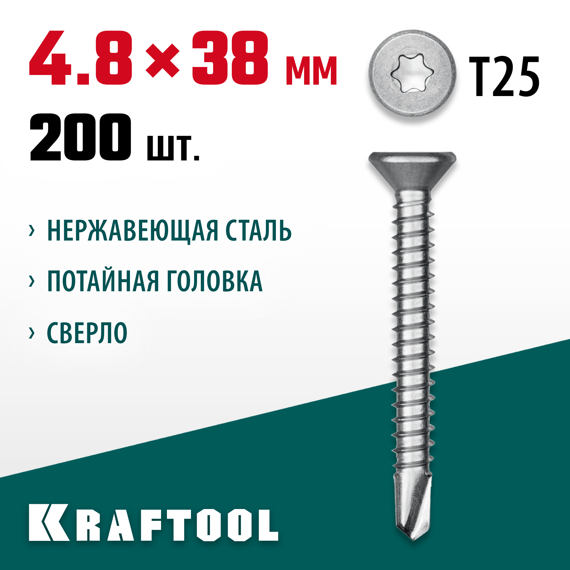KRAFTOOL 38 х 4.8 мм, 200 шт., нержавеющие саморезы НС-П с потайной головкой 300932-48-038