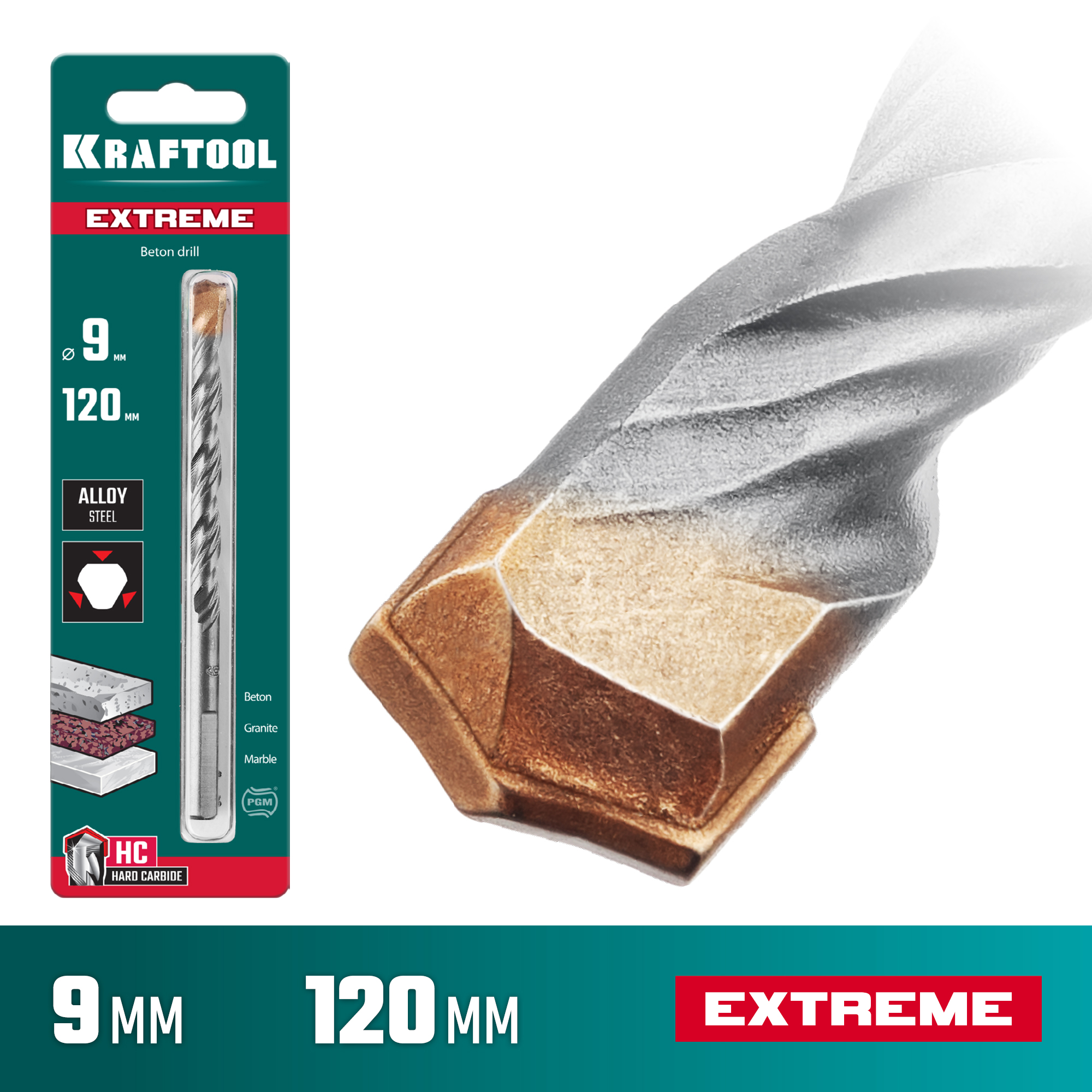 KRAFTOOL 9 х 120 мм, 3-х гранный хвостовик, сверло по бетону EXTREME 29166-120-09