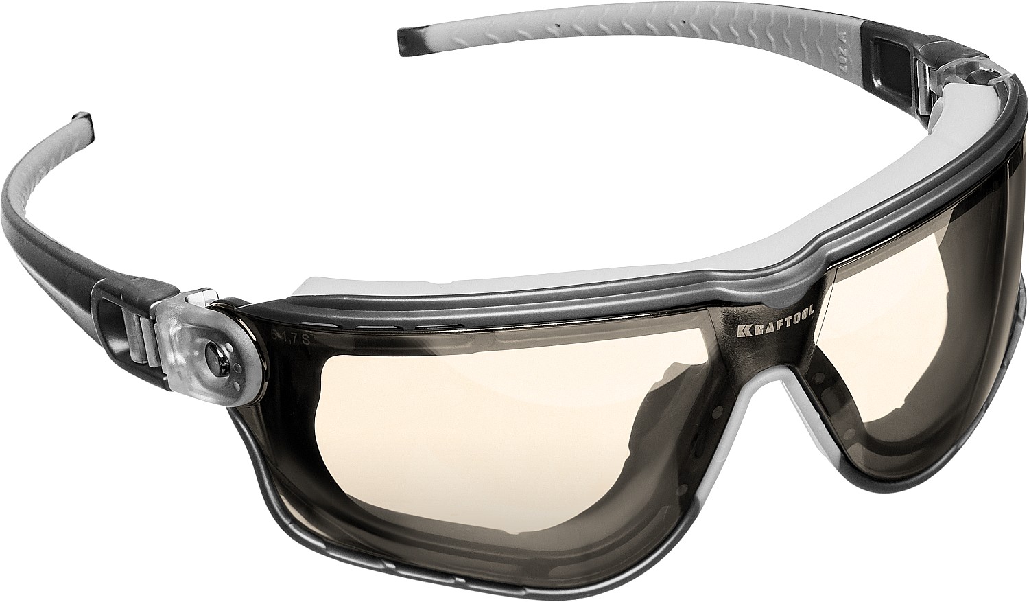 Очки защитные KRAFTOOL 110305_z01, предназначены для защиты органов зрения от твердых летящих частиц. Оптический класс - 1. Комфортная оправа из термопласт эластомера. Непрямая вентиляция. Регулируемые по углу наклона дужки.