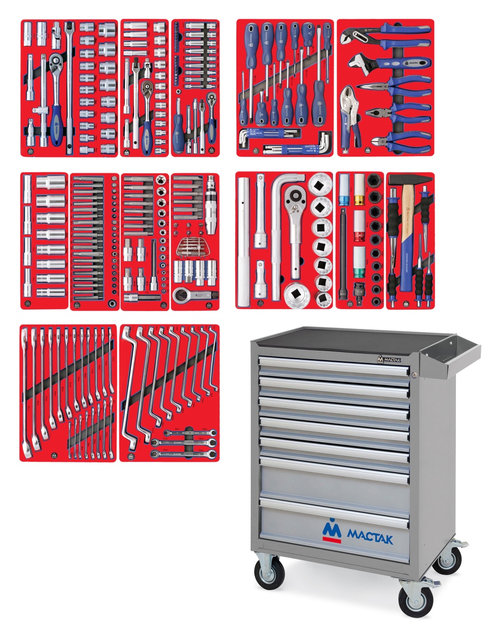 Набор инструментов ''ПРОФИ'' в серой тележке, 299 предметов МАСТАК 52-07299G