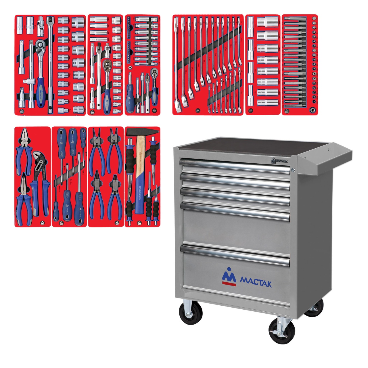 Набор инструментов ''СТАНДАРТ'' в серой тележке, 186 предметов МАСТАК 52-05186G