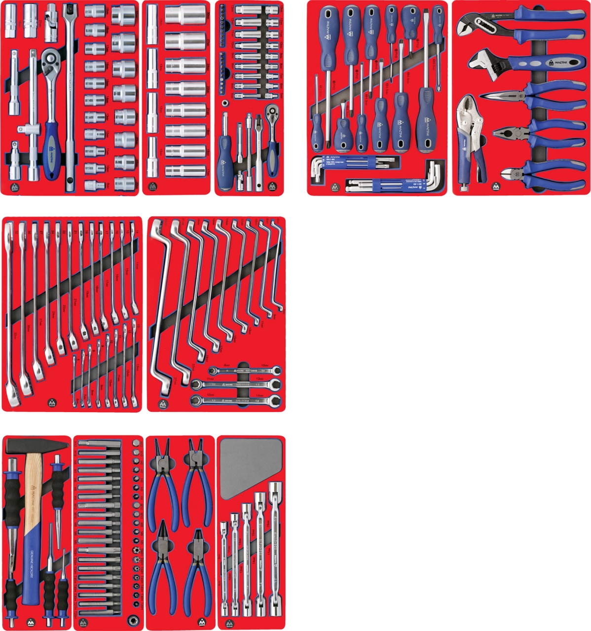 Набор инструментов ''МАСТЕР'' для тележки, 11 ложементов, 205 предметов МАСТАК 5-00205