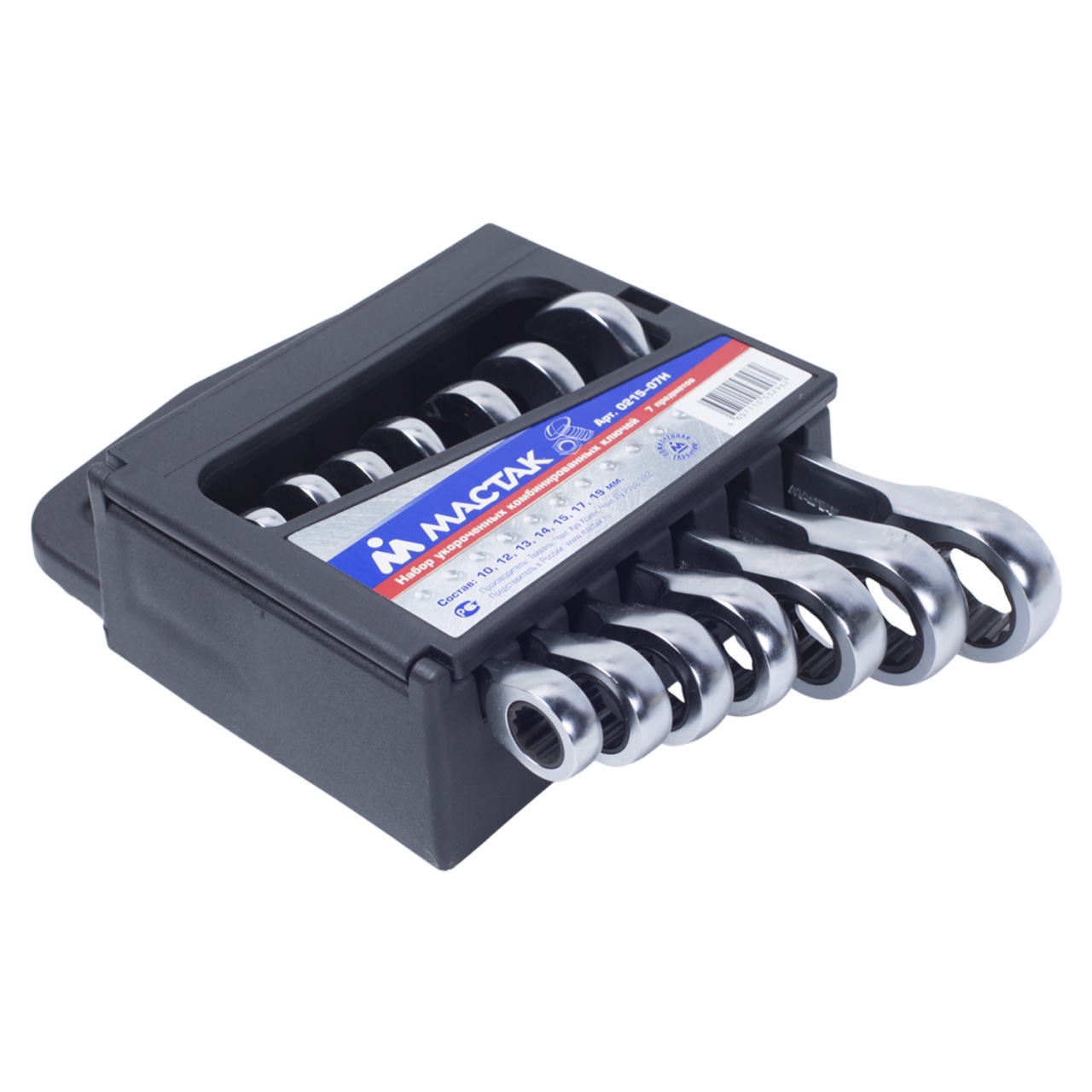 Набор комбинированных трещоточных укороченных ключей, 10-19 мм, 7 предметов МАСТАК 0215-07H