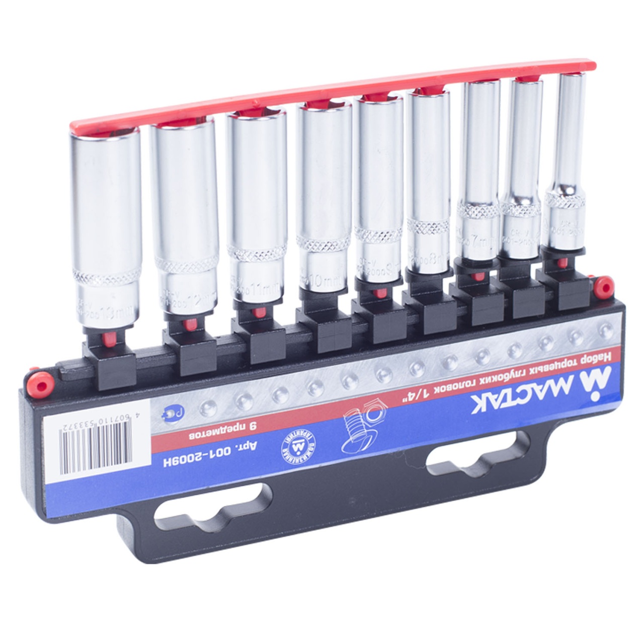 Набор торцевых глубоких головок 1/4'', 5-13 мм, 9 предметов МАСТАК 001-2009H