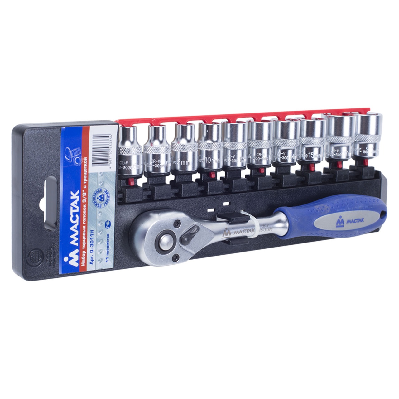 Набор торцевых головок с трещоткой 3/8'', 6-19 мм, 11 предметов МАСТАК 0-3011H