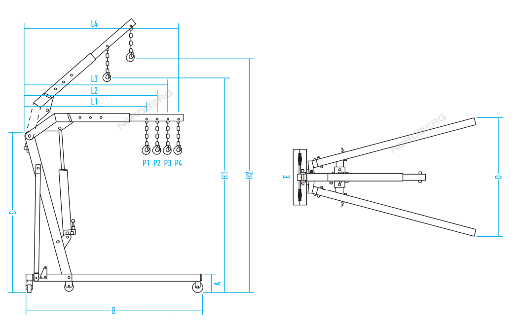 Кран гидравлический складной Nordberg N3730 усиленный 3 т, с 2х сторонним нагнетанием для вывешивания двигателя, подъема и опускания агрегатов автомобиля. Корпус кранов Nordberg изготовлен из толстолистовой стали и разработан с учетом эргономических требований.