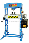 Пресс гидравлический ручной напольный с усилием 50 тонн укомплектован защитным клапаном от превышения давления, поперечным перемещаемым столом, механической ручной лебедкой для перемещения стола, V-образным блоком.Конструкцией устройства предусмотрены: электрический привод для автоматического управления насосом, а также автоматический возврат штока.