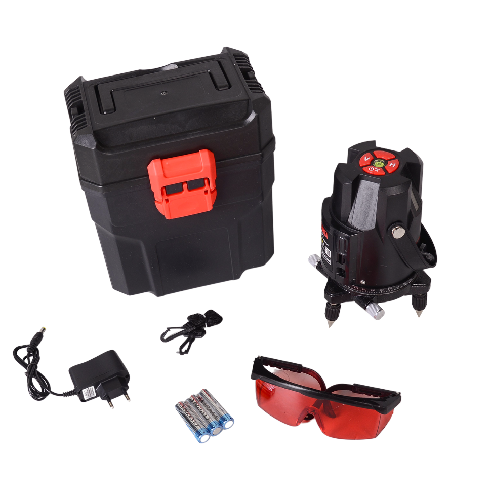 - Комплектация : Построитель лазерный - 1 шт. Батарейки АА - 3 шт. Паспорт (руководство) - 1 шт. Штатив - нет Кейс - да Защитные очки - да
